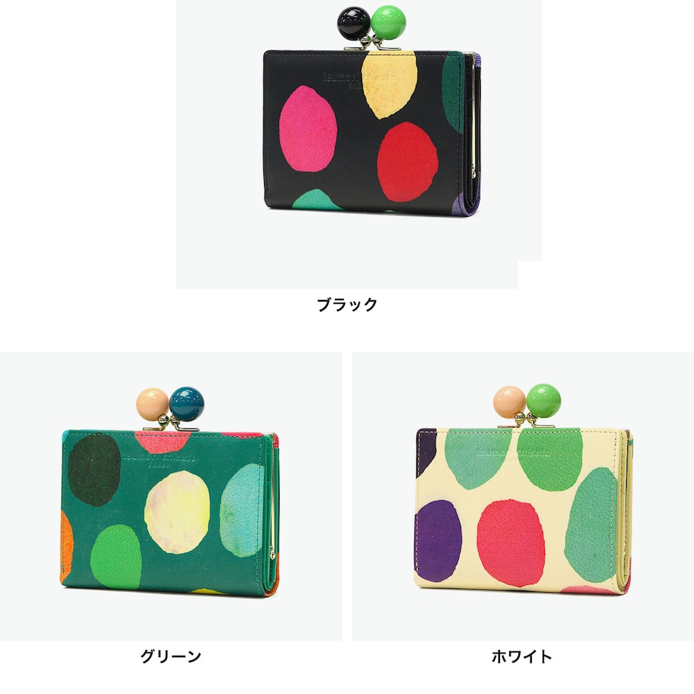 ツモリチサト 二つ折り財布 がま口 レディース ブランド 本革 tsumori chisato CARRY 財布 かわいい 大人 二つ折 カード入れ 小銭入れ 牛革 水玉 ドット カラフル 日本製 カラフルズームドット がま口財布 57952