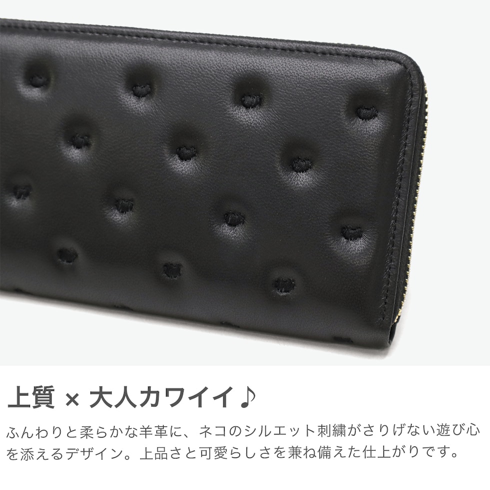 ツモリチサト 長財布 レディース 財布 ラウンドファスナー tsumori chisato CARRY ブランド 女性 おしゃれ かわいい ロングウォレット 大容量 小銭入れ カード 猫 ハート 刺繍 ラム革 本革 日本製 ぷちネコ 57887