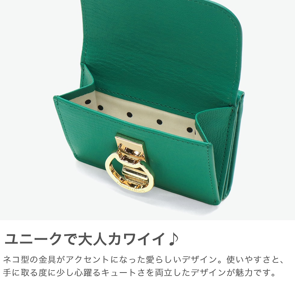 | 手のひらサイズの 上品な愛らしさ 飽きのこないシンプルなデザインに、アクセントとなるネコの金具が特徴的な『ネコおこし』シリーズの三つ折り財布。カードポケットをできるだけ少なくしたコンパクトサイズです。職人の手揉み技術によって作られたこだわりのシボレザーもポイント。上品かつ可愛らしさのある雰囲気で、年代問わずお使いいただけます。 |