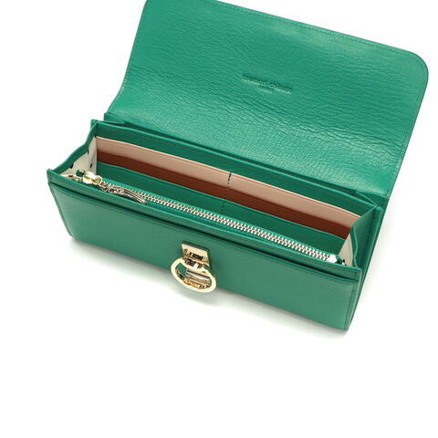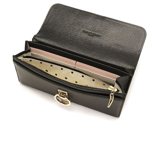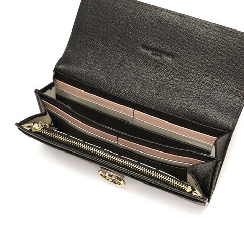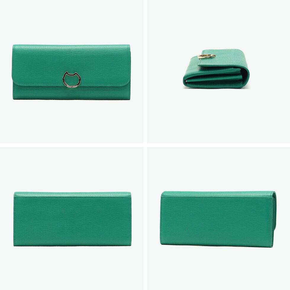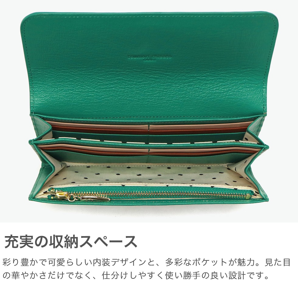 飽きのこないシンプルなデザインに、アクセントとなるネコの金具が特徴的な『ネコおこし』シリーズの長財布。仕切りが多く、紙幣やレシートなどを整理しやすい仕様です。職人の手揉み技術によって作られたこだわりのシボレザーもポイント。上品かつ可愛らしさのある雰囲気で、年代問わずお使いいただけます。