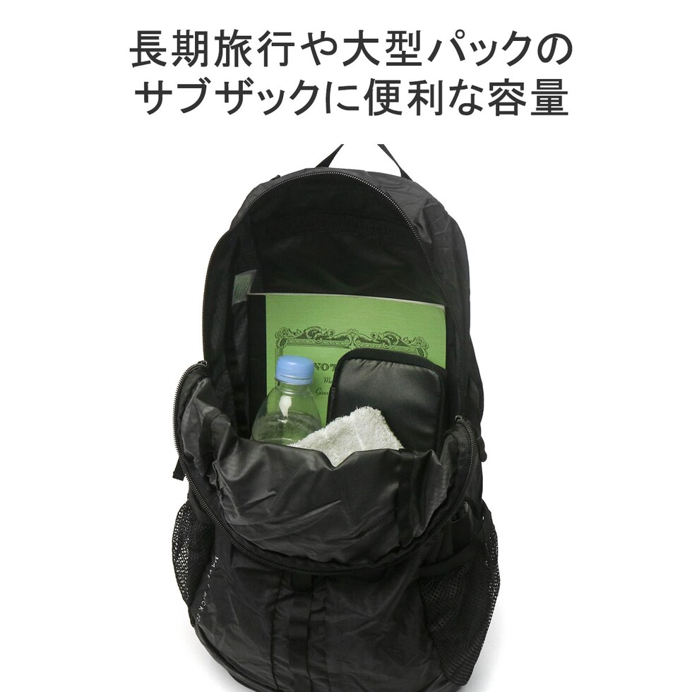 利便性と軽さを備え 旅行からタウンまで活躍 長期旅行や大型パックのサブバッグとして活躍する、ポケッタブル仕様の軽量リュックです。通気性に優れるエアメッシュ素材を使用したショルダーストラップで、快適な背負い心地を追求。さらに、両サイドにはメッシュポケットとコンプレッションベルト、フロントにはカラビナなどで小物が取り付けられるデイジーチェーンを備え、利便性の高い仕上がりとなっています。 |