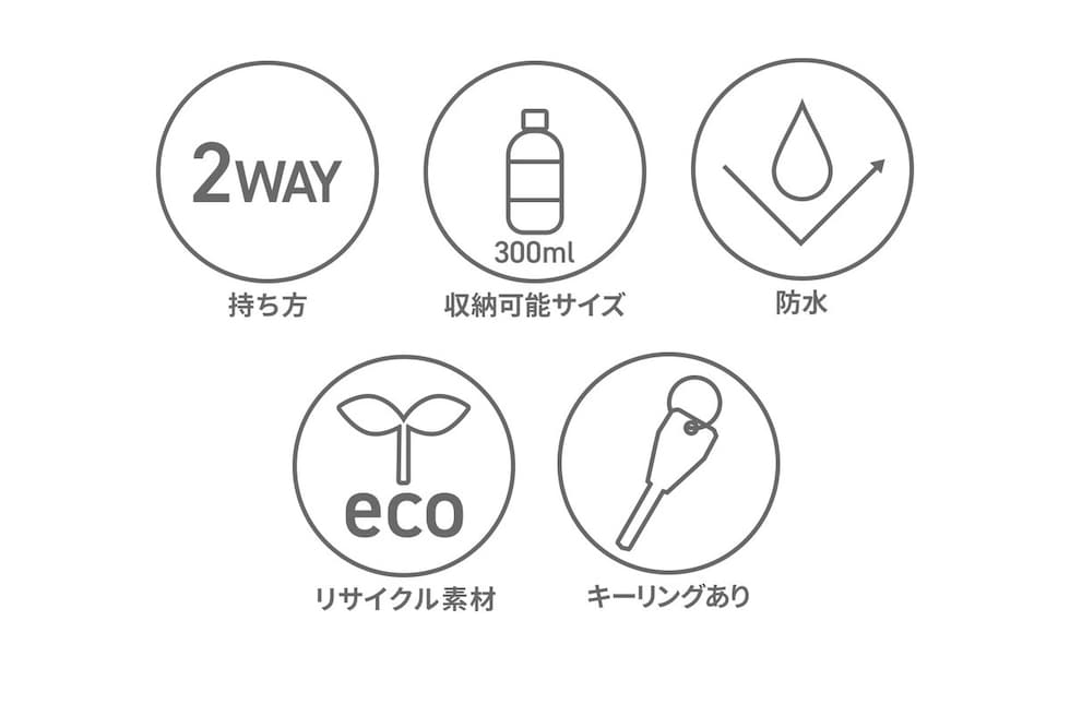| 仕様 | <内側> メッシュポケット(L)×1 └ 内蔵 キーフック×1 <付属品> ショルダーストラップ×1 |