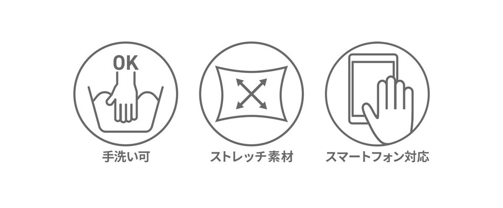 | 素材 | <表地> リサイクルフリース(ポリエステル93%、ポリウレタン7%) <平部> 導電フリース(ポリエステル94%、ポリウレタン6%) |