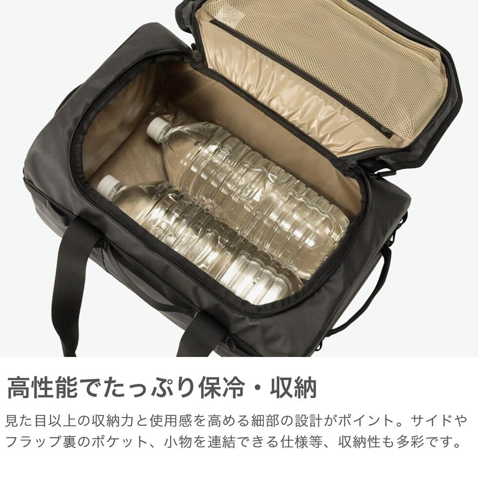 23Lソフトクーラー 高い保冷力と軽さを備えた、容量23Lのソフトクーラー。開口部はD字型に大きく開き収納しやすく、ファスナーからの冷気漏れを軽減するフォームチューブを備えています。500mlペットボトルを立てた状態で15本まで収納できるサイズ感で、2Lのペットボトルの場合は、寝かせた状態で収納可能です。アウトドアに活躍すること間違いなしのアイテムとなっています。 |
