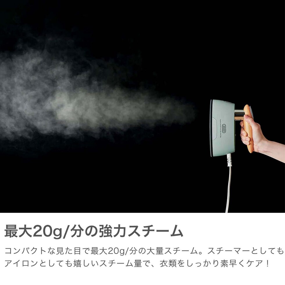 | 仕様 | <電源> 電源:AC100V 50-60Hz 定格消費電力:1200W <電源コード> 約 2.5m <水タンク容量> 約 140ml <スチーム量> 約 20g/分(最大) <スチーム動作時間> 約 7分間(HIGH使用時) <付属品> 置き台、注水用カップ、ユーザーズガイド(保証書含む) |