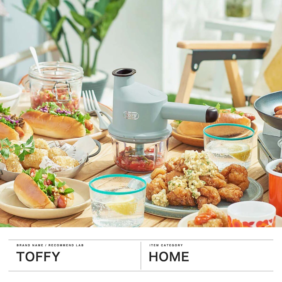 | コードレスで便利! 時短調理が叶う Toffy電動スライサー&ミニチョッパーは、コードレス設計で使いやすい充電式調理家電。みじん切りやスライスが簡単にでき、150ml対応のコンパクトサイズで収納も楽々。おしゃれなデザインは新生活やギフトにも最適。キャンプやアウトドアにも大活躍です。 |