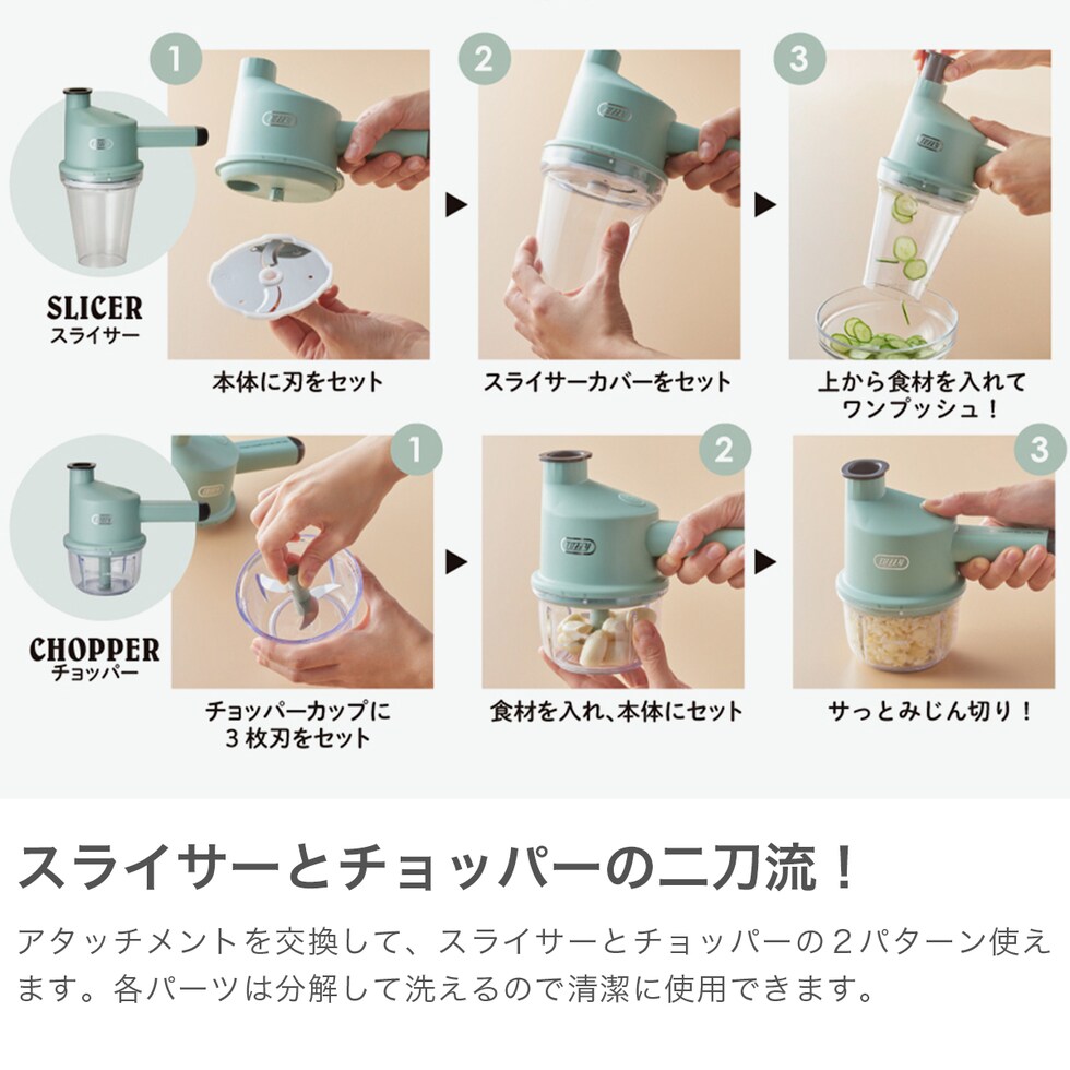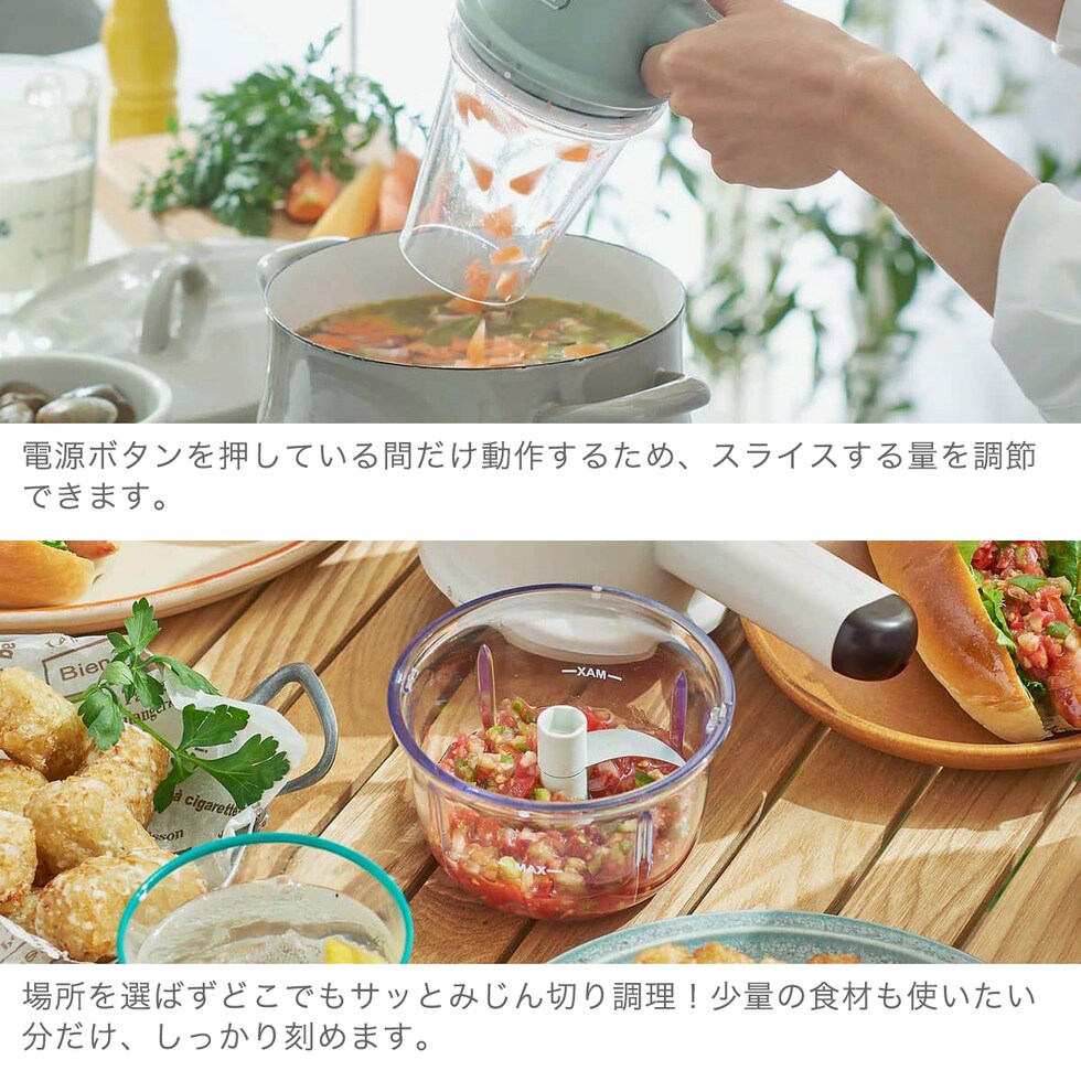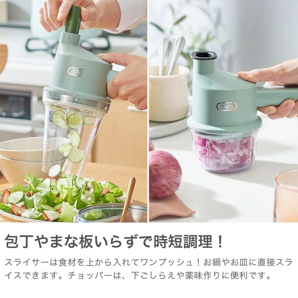 【正規品6ヵ月保証】 Toffy スライサー 電動 トフィー スライス みじん切り チョッパー 時短 時短調理 簡単 充電式 コードレス おしゃれ家電 プレゼント お祝い コードレススライサー&ミニチョッパー K-CH3