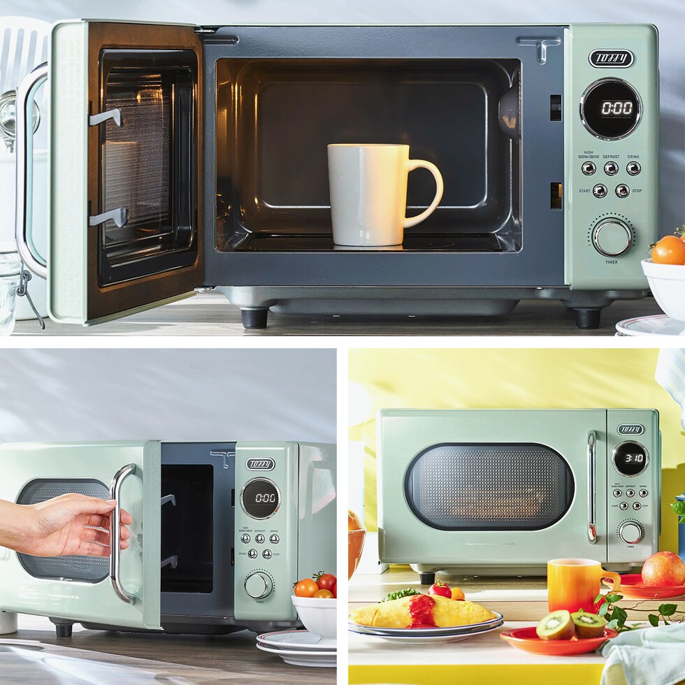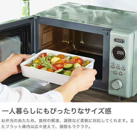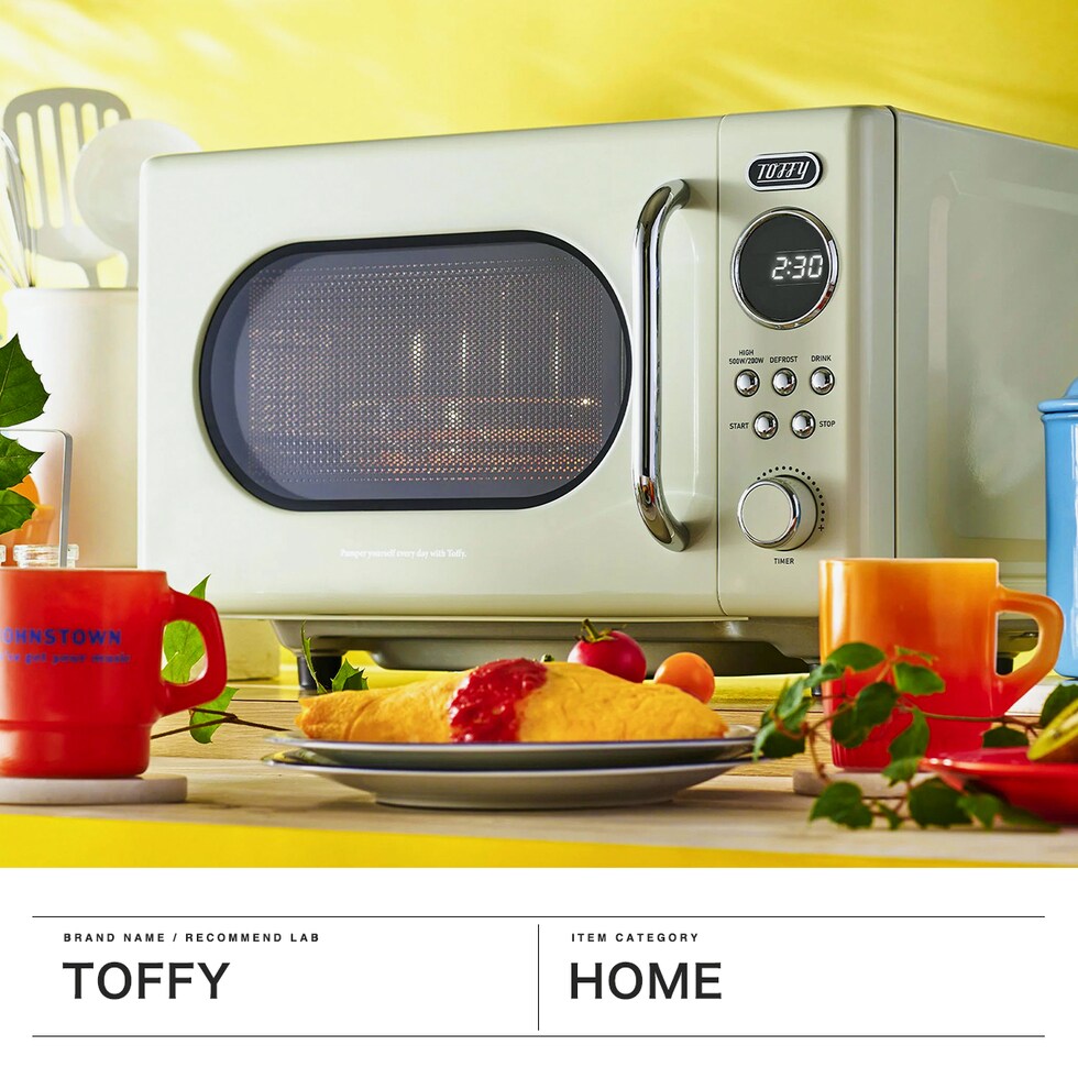 | さらに使いやすく進化 レトロ可愛い電子レンジ レトロなデザインが魅力のToffy電子レンジが、リニューアルでさらに使いやすくなりました。消音機能や長めの電源コードを搭載し、快適性がアップ。シンプル操作と軽量・コンパクト設計で、毎日の調理をサポート。インテリアのように映えるおしゃれな佇まいで、新生活やギフトにもぴったりの一台です。 |