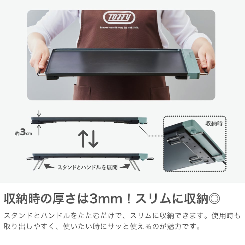 【正規品1年保証】 トフィー ホットプレート 大型 Toffy 丸洗い スリム収納 ワイド コンパクト シート型ヒーター 焼肉 パンケーキ スタンド 卓上 パーティー グリル おしゃれ スリムグリルプレート K-GP2