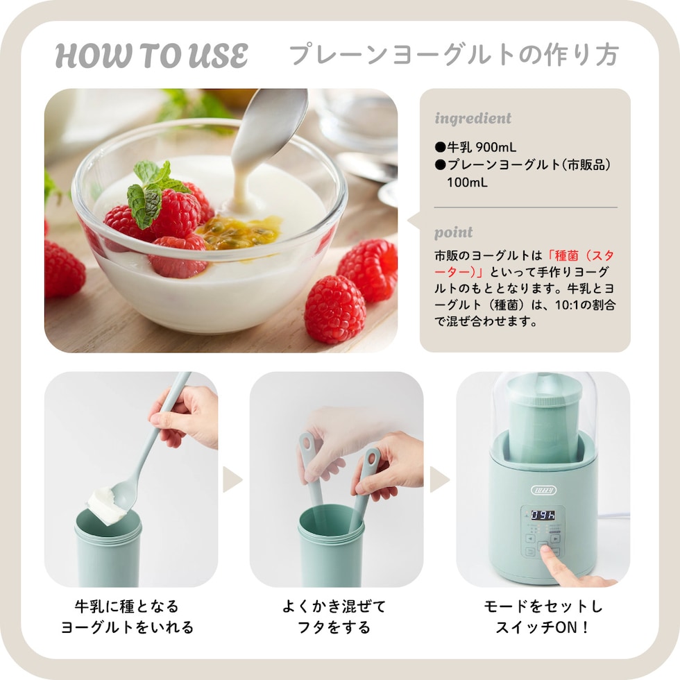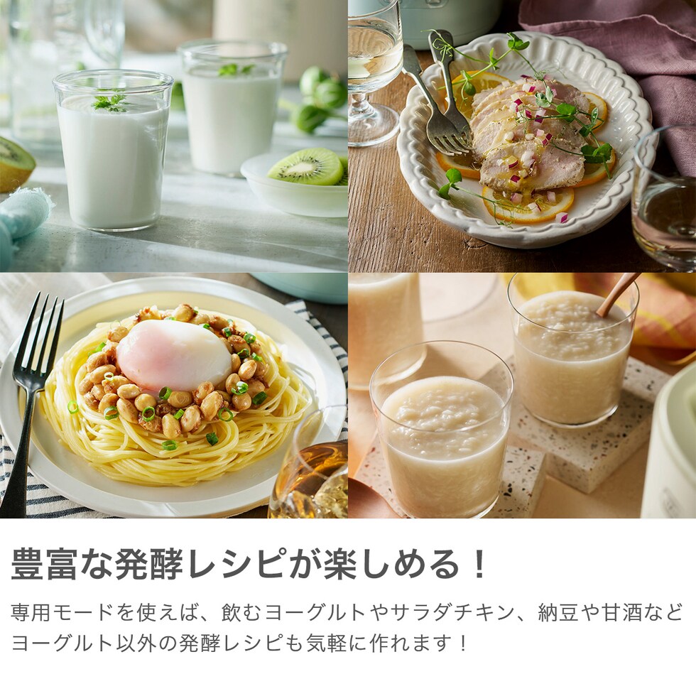 | 発酵&低温調理もできる ヨーグルトメーカー 1Lの牛乳パックを使って、カンタンに自家製ヨーグルトが作れるヨーグルトメーカー。ヨーグルト以外にも多彩な発酵レシピが作れる「マニュアルモード」も搭載。低温調理などさまざまな料理に活用できます! |