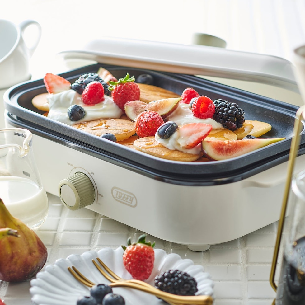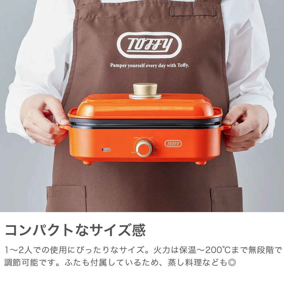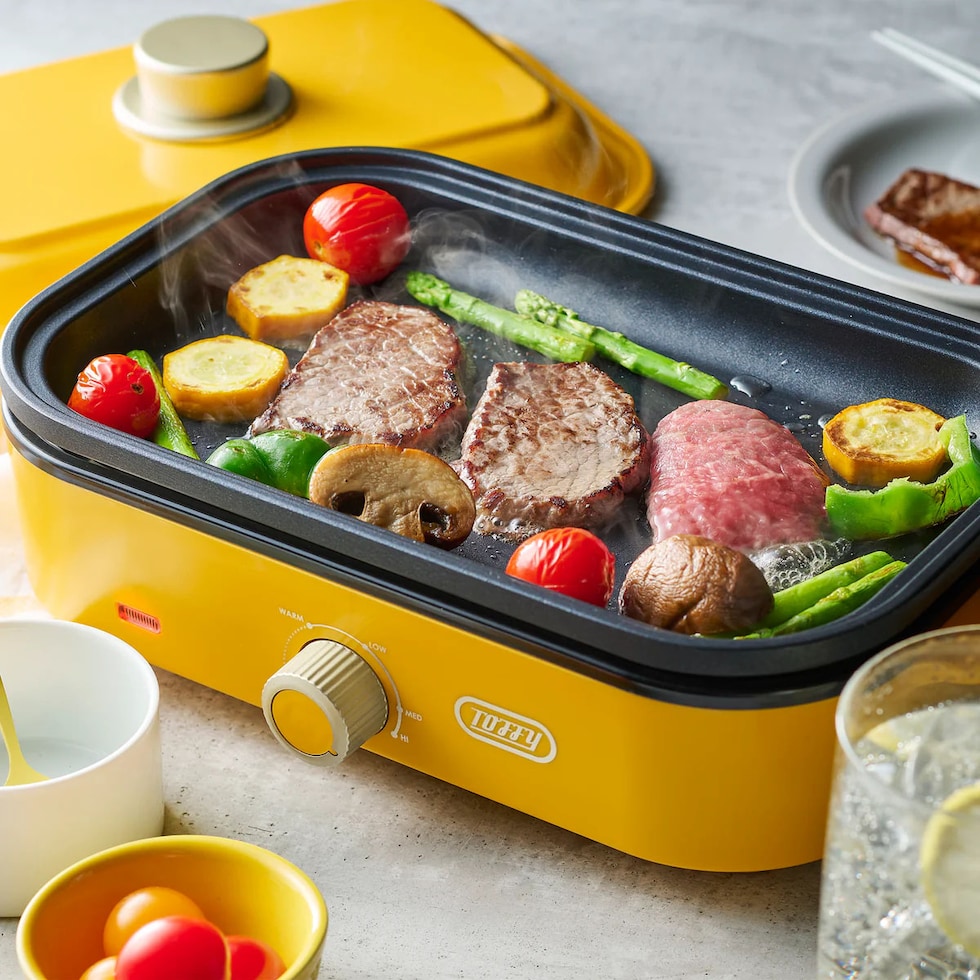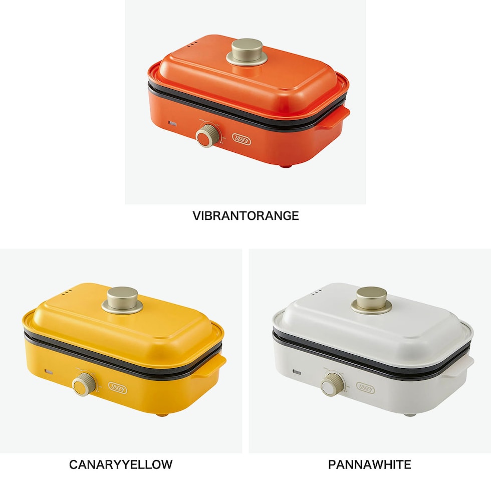 1~2人での使用に丁度良いサイズのホットプレート。火力は保温~200℃まで無段階で調整可能です。見ているだけで楽しくなるカラフルなカラーバリエーションで、食卓を鮮やかに彩ります!普段使いからホームパーティーまで幅広いシーンにおすすめです。
