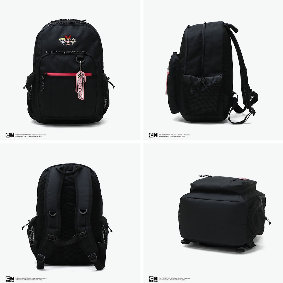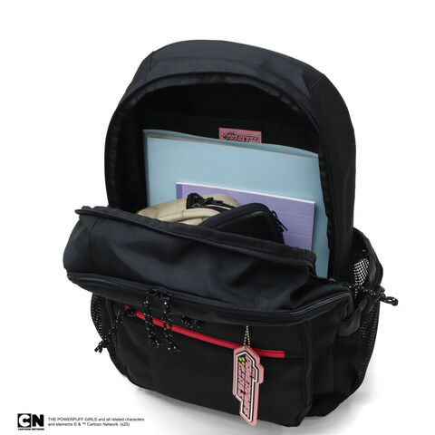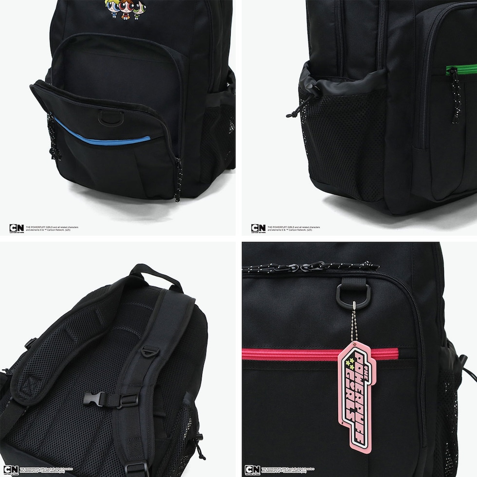 機能的通学バッグ♪ アメリカのカートゥーンネットワークで放送されたアニメ『パワーパフガールズ』のリュック。ファスナーテープは、主人公のブロッサム、バブルス、バターカップの3姉妹のカラーに。刺繍であしらわれた可愛いキャラクター達と、付属のかわいいロゴチャームがアクセントになった、可愛らしい仕上がり。28L容量のサイズ感でB4サイズが収まり、2層構造のメインルームは荷物の仕分けに便利。快適な学校生活をサポートしてくれるアイテムとなっています。 |