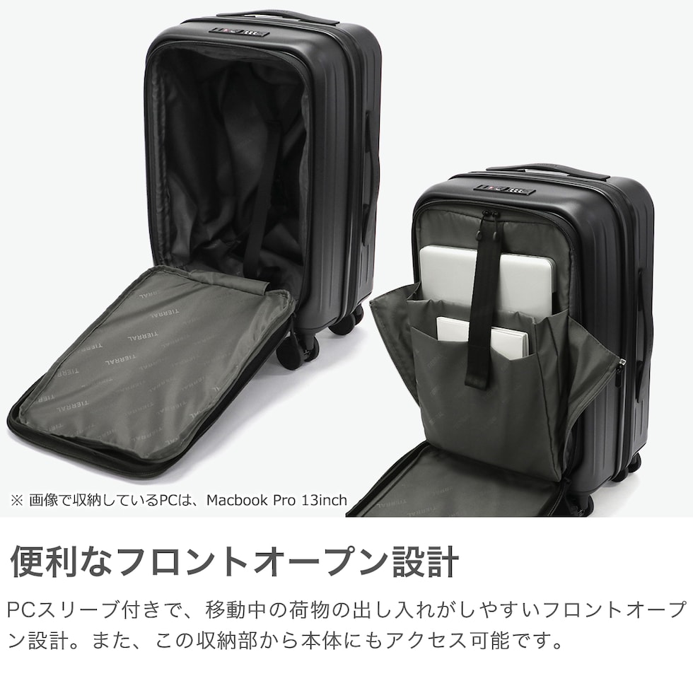 【正規品1年保証】 ティエラル スーツケース 機内持ち込み Sサイズ TIERRAL キャリーケース フロントオープン 拡張 軽量 ストッパー 静音 TSロック PC収納 13inch 37L 43L 3泊 4泊 5泊 TOMARU 2.0 TTMR2-001