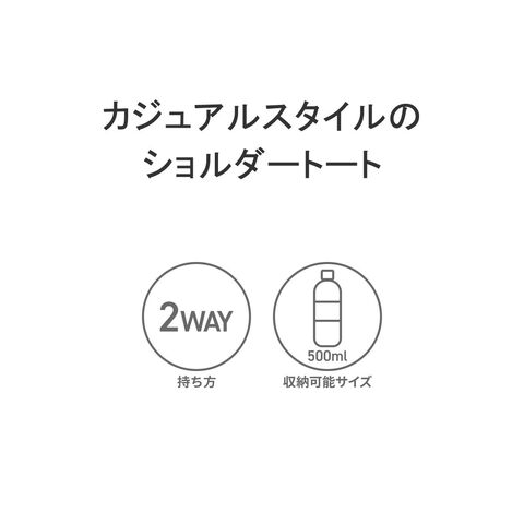 カジュアルスタイルの ショルダートート その日の気分やシーンに合わせたスタイルが楽しめる、ファスナー付き2WAYトートバッグ。手荷物をすっきりまとめ、外出をより心地よく過ごせるアイテムです。斜めがけできる着脱可能なショルダーベルト付き。内装ポケットも充実しており、イヤホンケースや定期入れなど細かな荷物の整理に最適です。 |