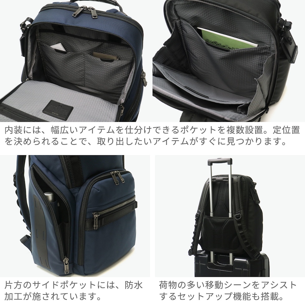 高機能ビジネスリュック 耐久性、機能性を備えた多目的に使えるデザインの『Alpha Bravo/アルファブラボー』コレクションのバックパックです。素材にはエコで耐久性の高いバリスティックナイロンを採用。オーガナイザーポケットを多数備え、ビジネスツールから日常の必需品までスマートに収納ができる高機能なアイテムとなっています。 |
