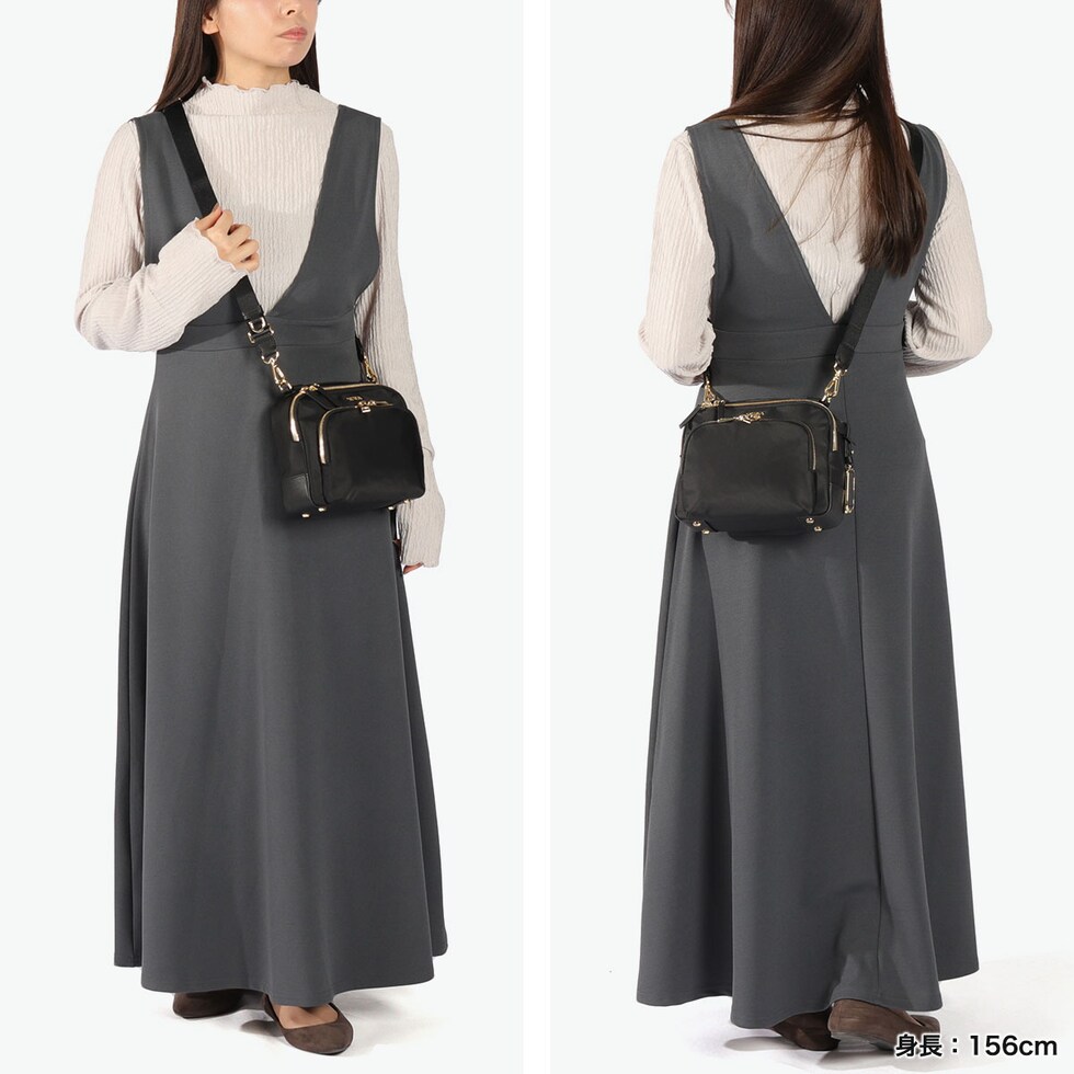 | 仕様 | <外側> ポケット×2 <内側> ポケット×2 カードポケット×1 キーフック×1 <付属品> ショルダーストラップ×1 チャーム×1 |