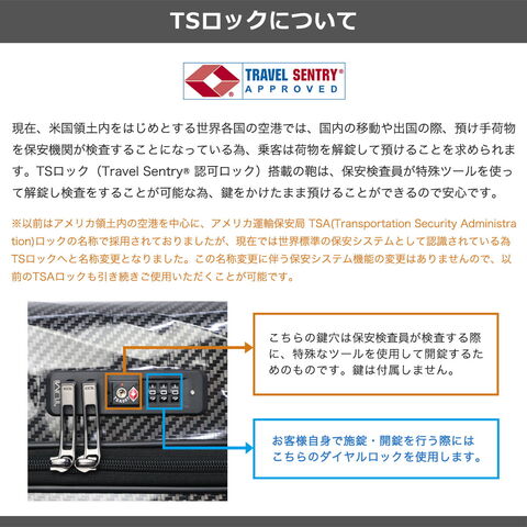 | TSAロック | あり ※TSAロックについて |