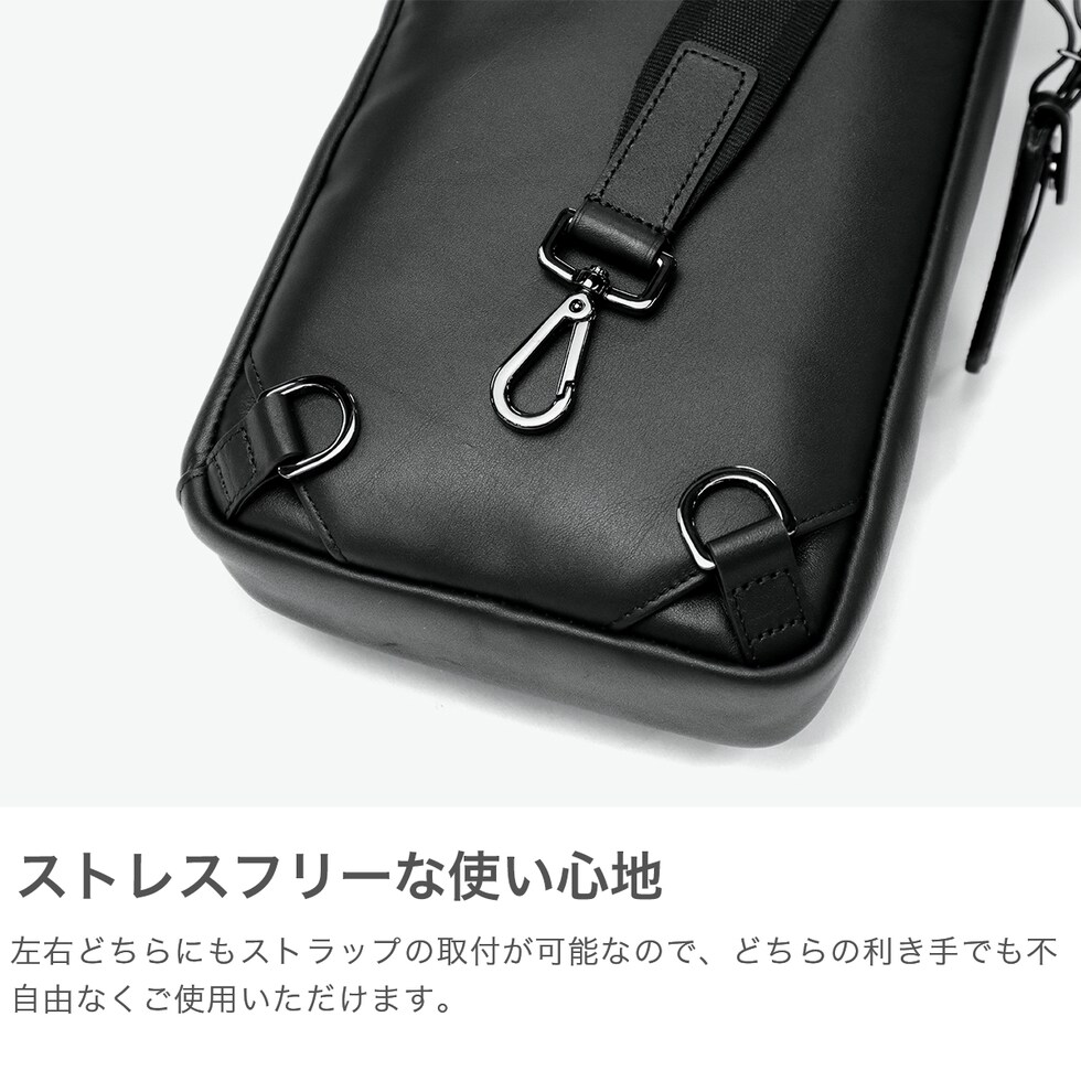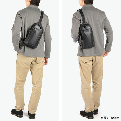 大人の本革ボディバッグ タイムレスでモダンなスタイリングのコレクション『Harrison/ハリソン』。こちらは、洗練されたスタイルのスリングバッグです。レザーの表面に立体加工を施し、アーキテクチュラルでモダンなデザインに仕上げています。 |