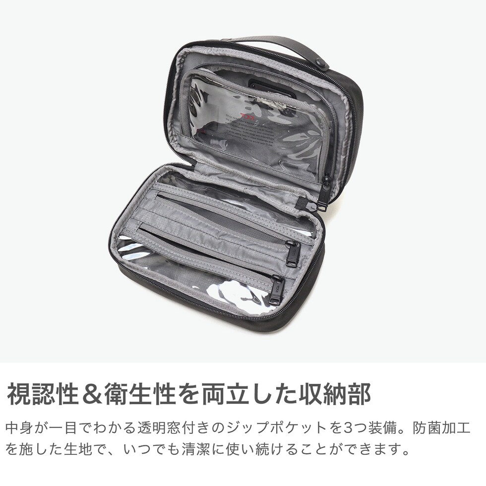 視認性に優れた万能ポーチ 旅行でも日常のジム通いにでも、必要なものをスマートに収納。散らかりがちな小物類を一つにまとめて、出張の際の荷作りも素早く完了。内部は透明な窓が施されたファスナーポケットで、何が入っているか一目で把握できます。 |