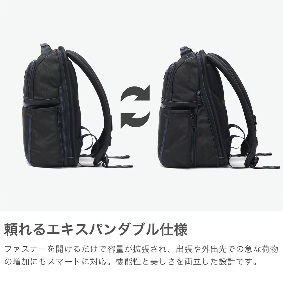 スマートリュック 洗練されたデザインと機能性を備えたリュックサック。防水仕様のサイドポケットや、拡張機能も搭載したハイスペックな仕上がり。素材には、最高基準の耐久性と耐摩擦性を誇るTUMIオリジナルのバリスティックナイロンに撥水加工を施しました。ビジネスシーンに馴染むルックスで、オンオフ問わずお使いいただけるアイテムとなっています。 |