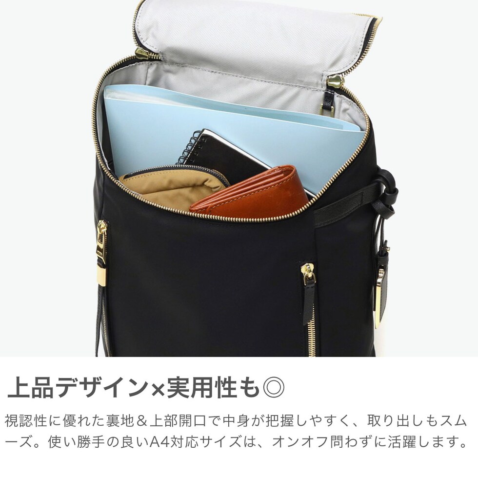 | 通勤やお出かけに最適な コンパクトリュック こだわりの品質、耐久性を備えながらも、現代の女性が求める洗練されたデザインとファッションエッセンスを加えた『Voyageur』の「イモージェン」バックパック。きれいめなデザインで、通勤やおでかけなどシーンを選ばず活躍してくれます。 |