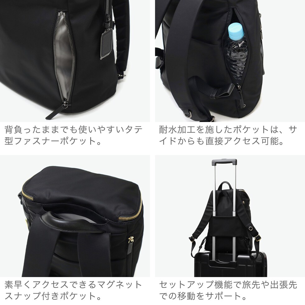 【正規品5年保証】 トゥミ リュック レディース 軽量 小さめ 通勤 ビジネスバッグ TUMI デイリー ビジネス リュックサック きれいめ おしゃれ 上品 ブラック A4 Voyageur 「イモージェン」バックパック 0196708