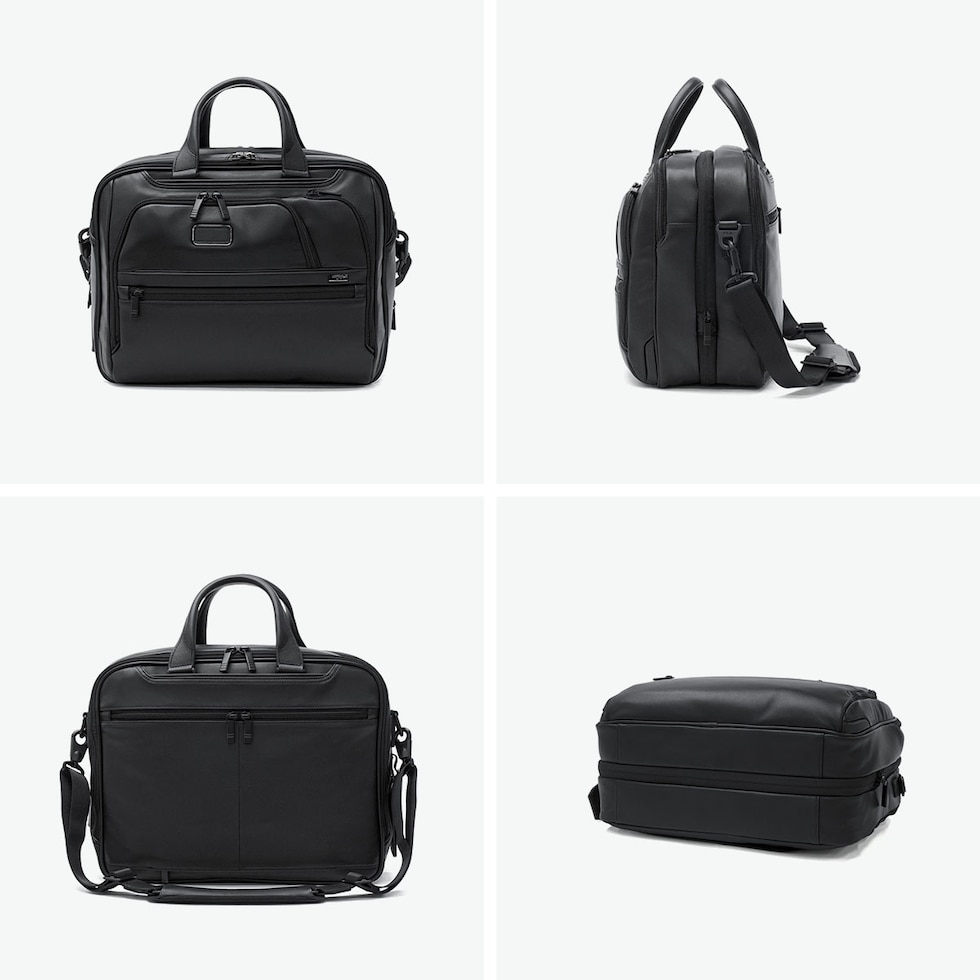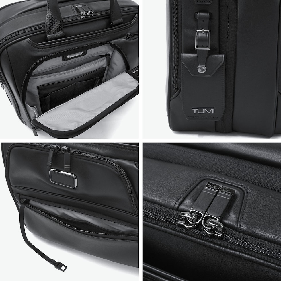 | 品格と機能美を纏う 上質レザーブリーフ TUMIの定番『Alpha4』シリーズのレザー製ブリーフケース。PCや書類を美しく整理できる2層構造に、防水ポケットやAirTag専用スペースなど、現代ビジネスに欠かせない機能を集約しました。荷物が増えた際も安心の拡張機能に加え、手持ち・ショルダーの2WAY仕様でシーンに応じた使い分けが可能。マグネットで引手を固定できるジッパーガレージも搭載し、機能性と品格を両立したビジネスパーソン必携の逸品です。 |