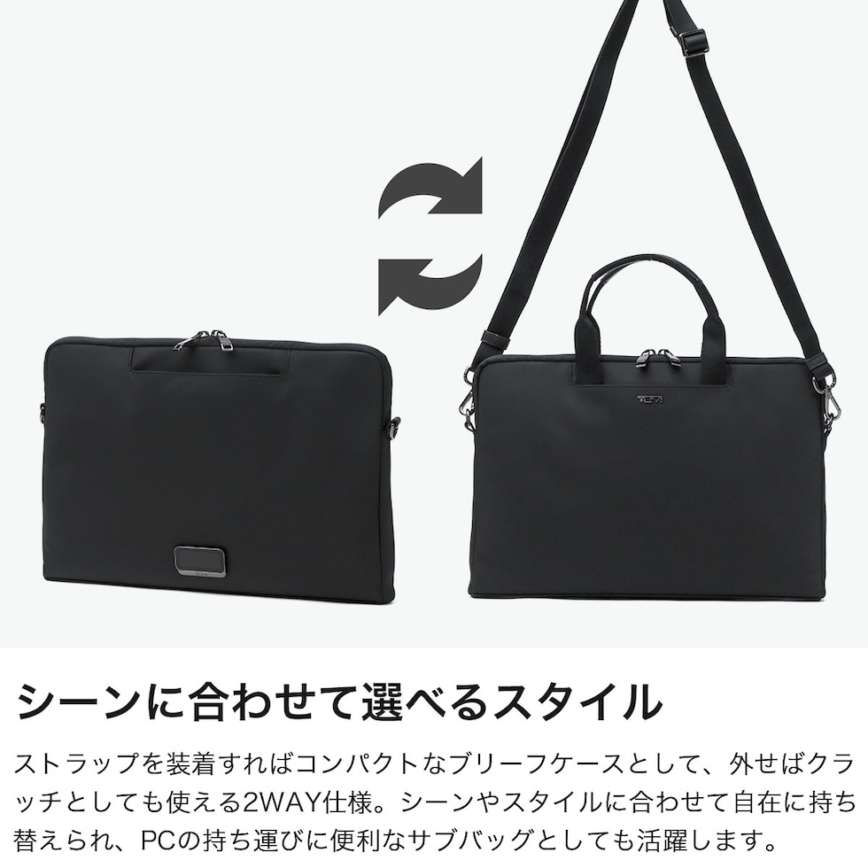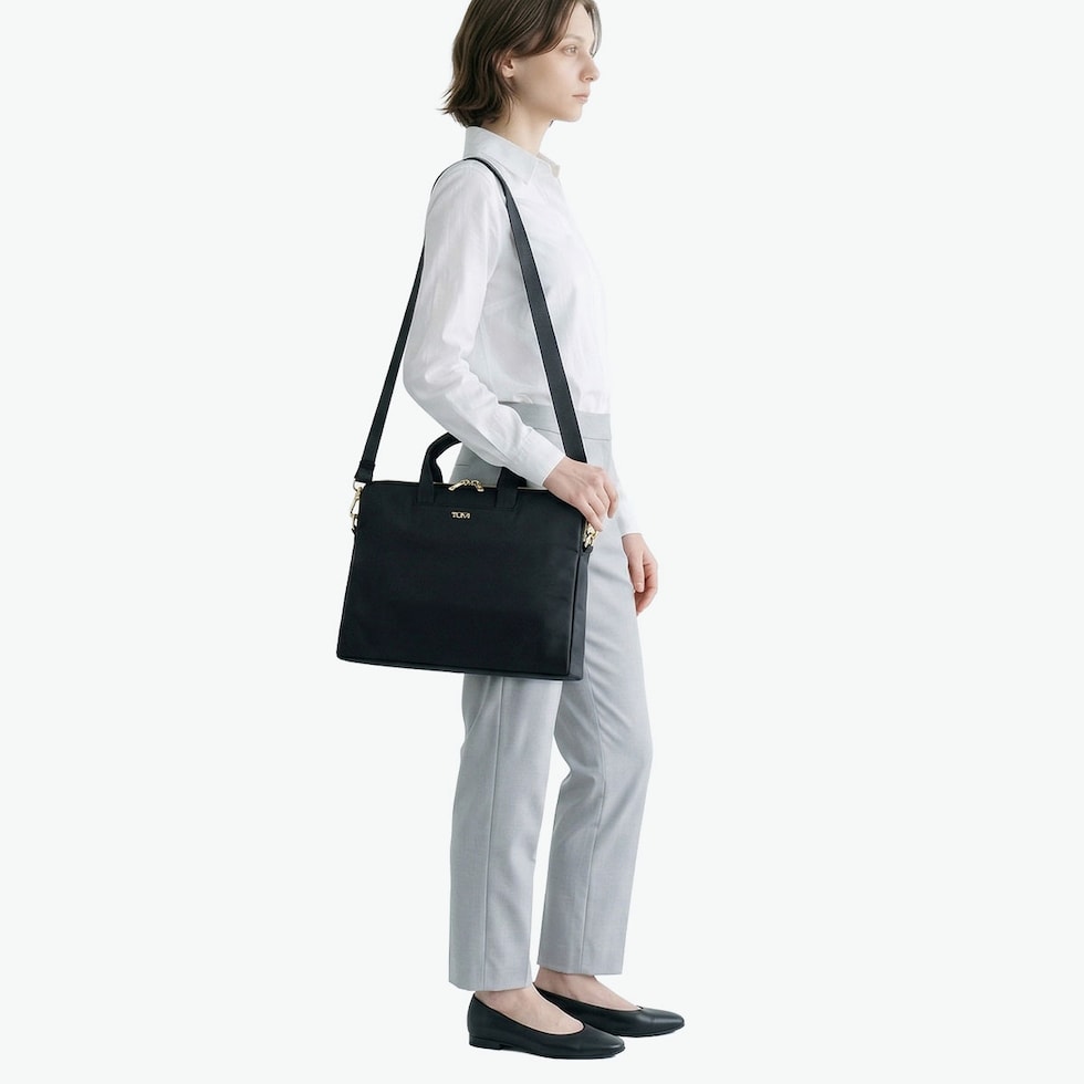 スマートPCケース こだわりの品質と耐久性を備えつつ、現代の女性が求める洗練されたデザインとファッション性を融合した『Voyageur』のPCケース。A4サイズの書類や14インチまでのPCをすっきり収納できる、無駄のないスリムなシルエットが魅力です。取り外し可能なショルダーストラップに加え、トップハンドルはポケットに収納可能。シーンに応じてバッグインやクラッチバッグとしても使える、柔軟でスマートな使い勝手を備えています。 |