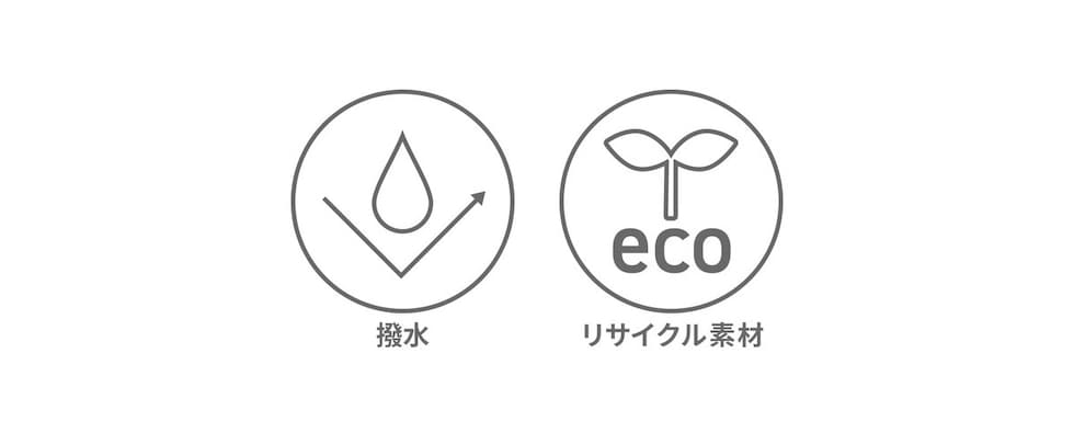 | 素材 | <表地> リサイクル繊維(rPET)由来のポリエステルを使用したポリウレタン(PU)、無溶剤 |