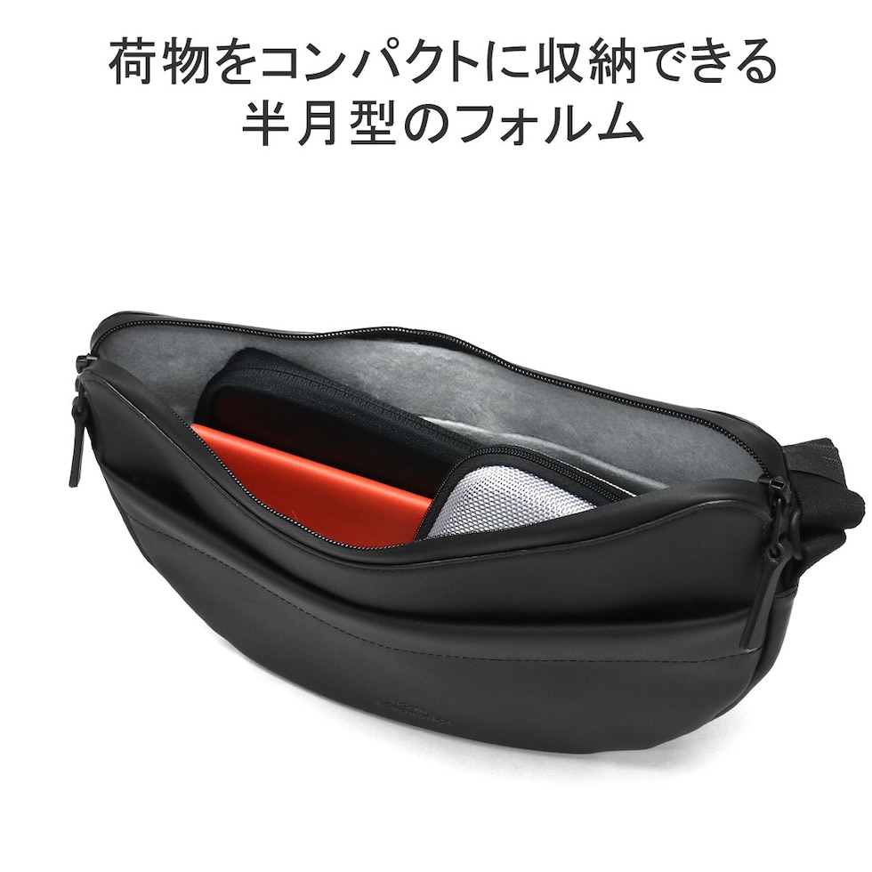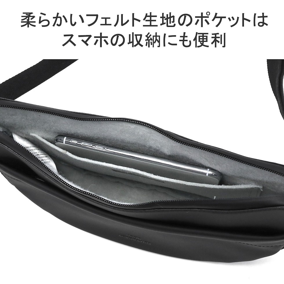 | アクセサリー感覚の スタイリッシュデザイン アクセサリー感覚で持ち運べるスタイリッシュなデザインのショルダーバッグ。表にはマグネット式のフロントポケットが付いているので、すぐに取り出したい小物の収納も可能。また、内装にはクッション性のある柔らかいフェルト生地を使用しているので、携帯電話など壊れやすいアイテムも安心して持ち歩けます。 |