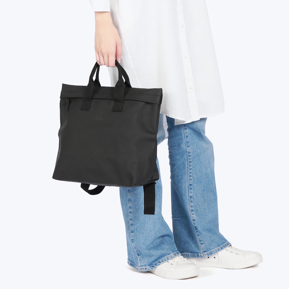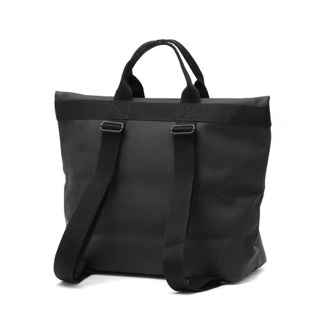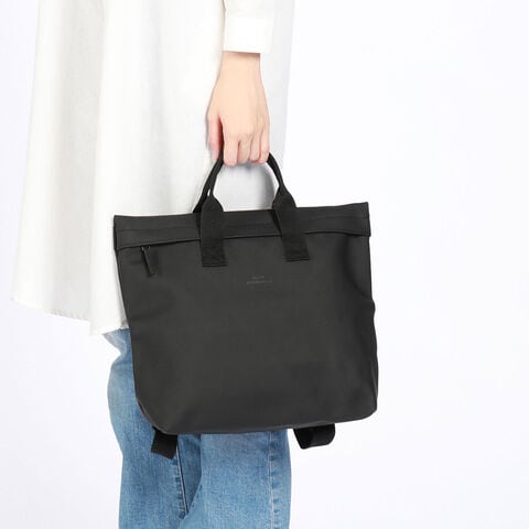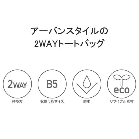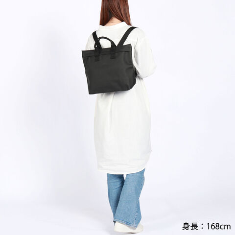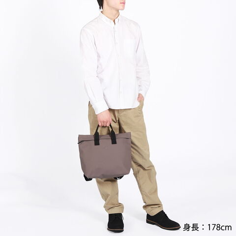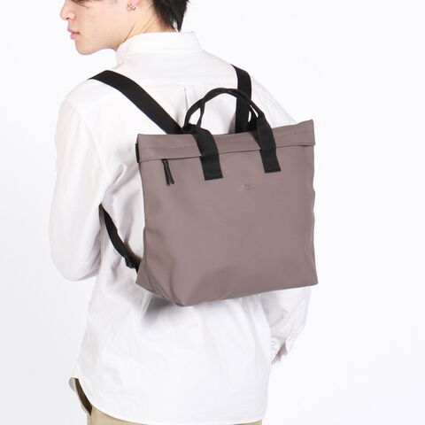 | アーバンスタイルの 2WAYトートバッグ 機能的でスタイリッシュなデザインの2WAYトートバッグ。シーンやお好みに合わせ、リュックとトートを使い分け可能です。内側にはファスナーポケットを備え、移動の多いアーバンスタイルにおすすめのアイテムです。また、素材にはソフトな感触でエレガントな装いのヴィーガン・テックを使用しています。頼もしい防水機能も備わっており、ビジネスシーン、タウンユースだけでなくフェスや旅行といったアクティブなレジャーシーンでの活躍も期待できます。 |