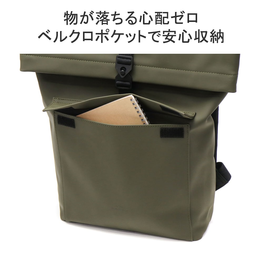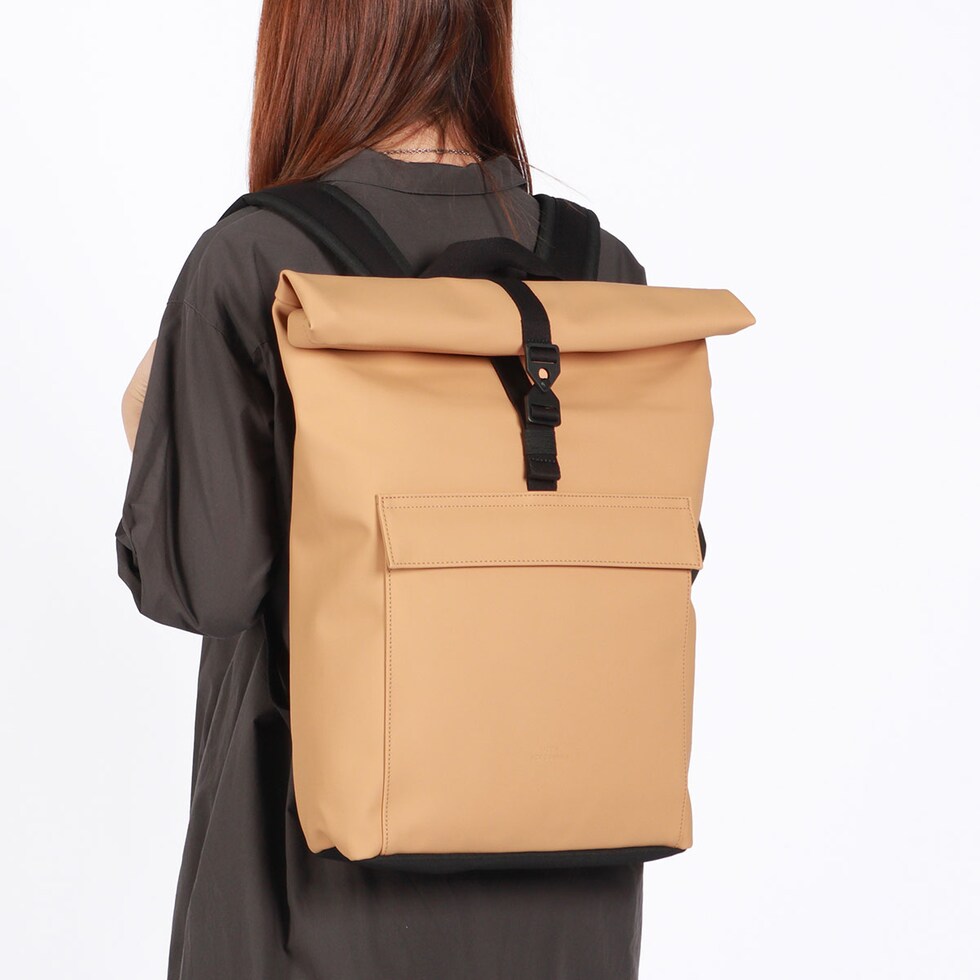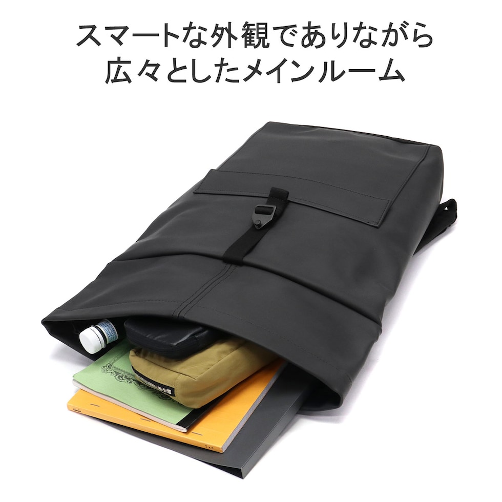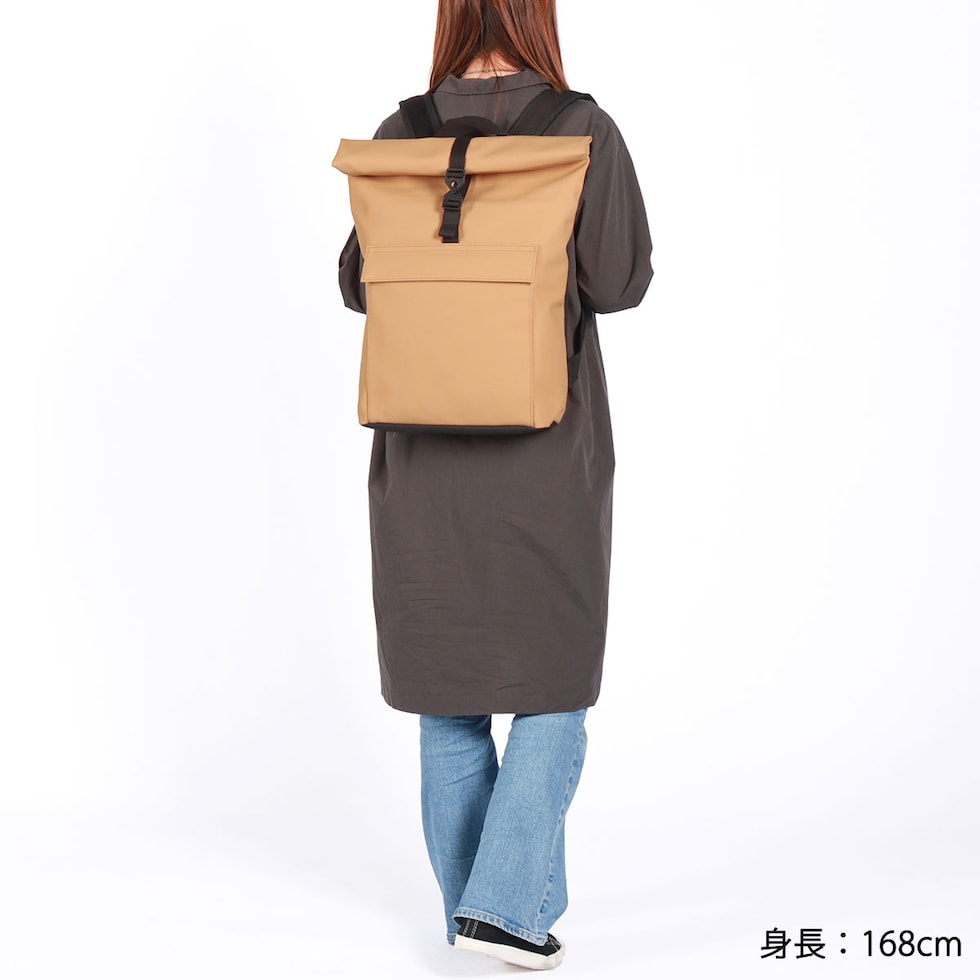 | シックでマットな質感が 大人の洗練された雰囲気 シンプルでミニマルなシルエットが特徴の、どんなシーンにも馴染む洗練されたバックパック。ロールトップ仕様により荷物の量に応じて容量を調整でき、頼れる16Lの大容量を確保しています。環境に配慮したヴィーガンテック素材を採用し、防水性も完備。デイリーユースはもちろん、タフな素材とシックなマット仕上げがビジネスシーンにもスマートにフィットする、ブランドのアイデンティティを体現した一品です。 |