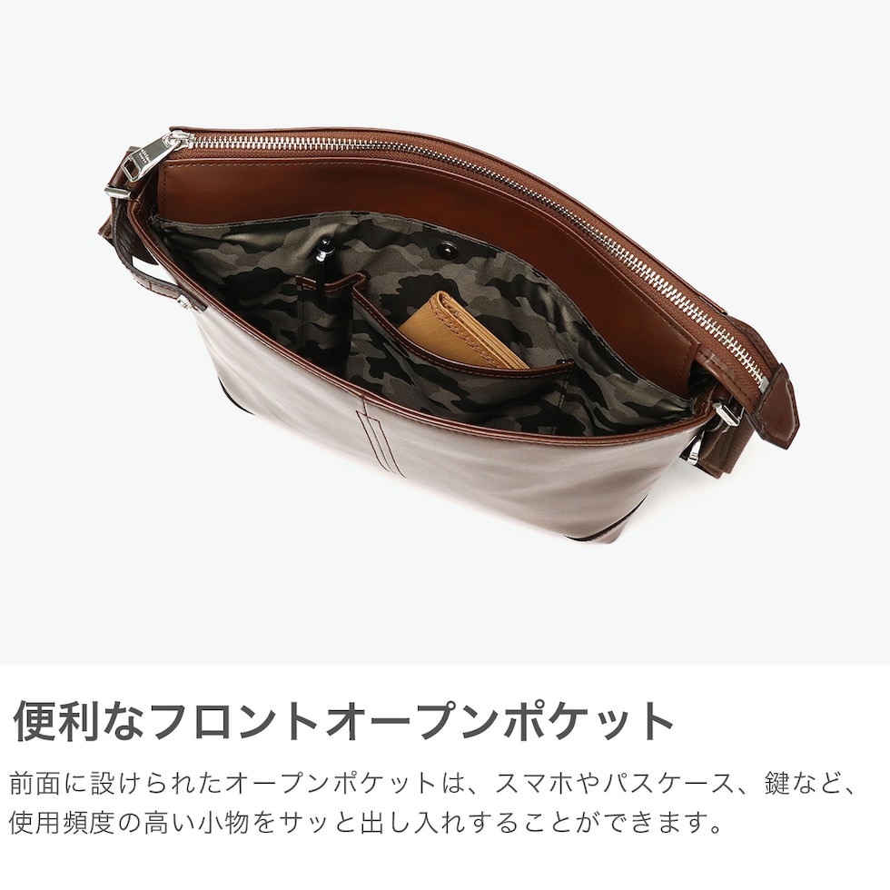 優れた機能性を搭載 透明感のある上質なレザーと、衛生面に優れた機能的デザインが魅力のシリーズ『バート』の横型ショルダーバッグ。フォーマルにもカジュアルにもマッチするルックスと、充実した収納性を兼ね備え、シーンを問わずにお使い頂けるアイテムに仕上がっています。 |