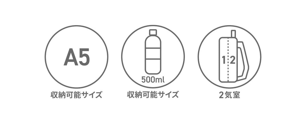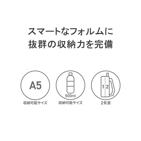 | 仕様 | <外側> マグネットポケット(L)×1 ジップポケット(M)×1 <前面収納> ポケット(S)×2 <背面収納> ジップポケット(L)×1 ポケット(L)×1 |
