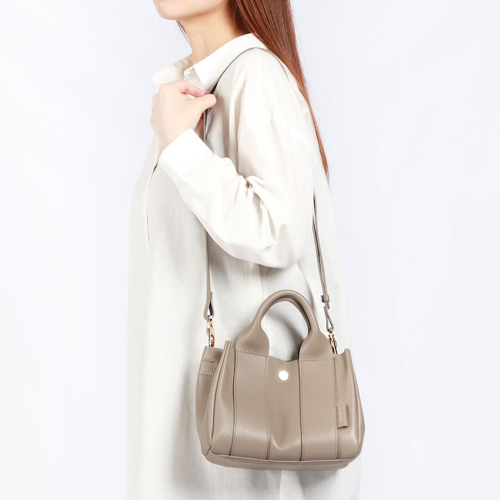 | 上品さを纏った 優美なデザイン しなやかで傷の付きにくいシボの型押しレザーが上品な『TRERO/トレロ』の2WAYトートバッグ。どんなコーディネートにも馴染む、洗練されたデザインが魅力です。ソフトな質感と軽さが特徴のイタリアンWフェイスレザーを使用。着脱可能なショルダーストラップ付きで、街歩きにも最適です。 |