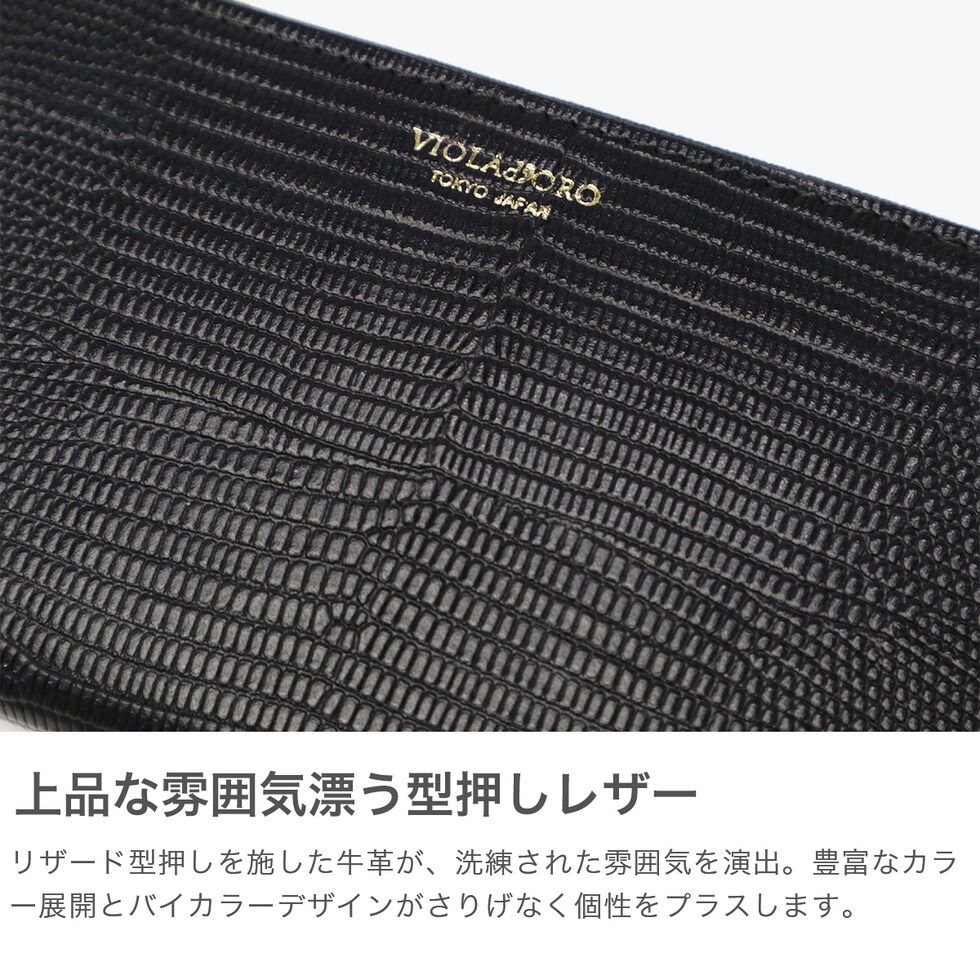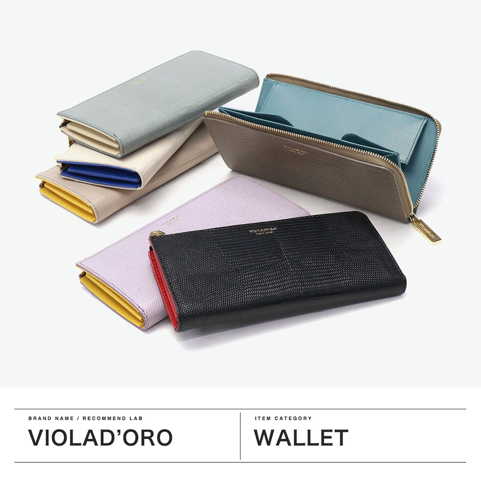 【正規品】 ヴィオラドーロ 長財布 レディース 薄い 薄型 VIOLAd'ORO 本革 革 牛革 ブランド スリム 女性 財布 ファスナー L字型 大人 上品 日本製 リザード型押し PORTA リザード型押しレザー L字型財布 V-5039