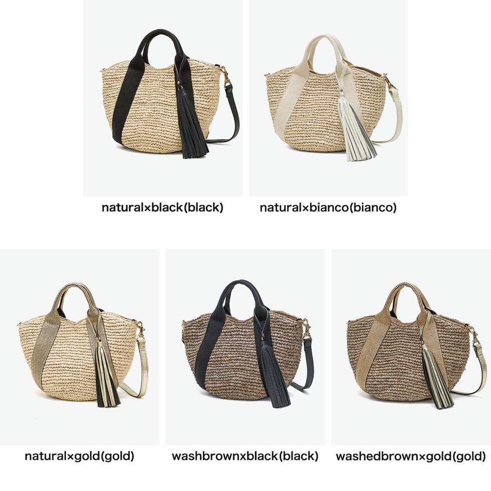 | カラー | natural×black(black)、natural×bianco(bianco)、natural×gold(gold)、washbrown×black(black)、washedbrown×gold(gold) |