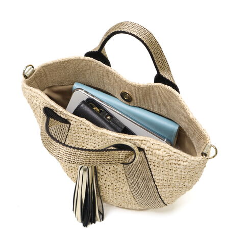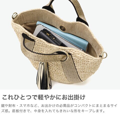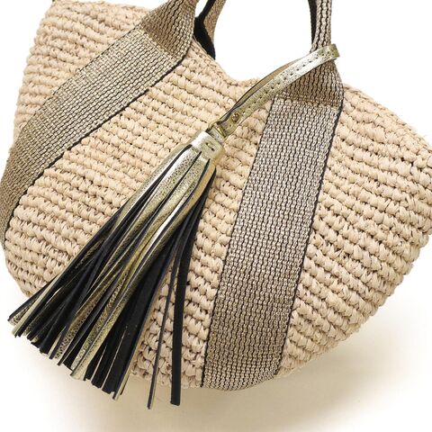 大人のミニトートバッグ ラフィアで編み上げたボディにテープのハンドルがアクセントになったカゴバッグ。コロンと丸いフォルムと上品に揺れるタッセルが魅力的です。天然素材のカジュアル感がありながらも上品でフェミニンな印象なので幅広いシーンでお使いいただけます。 |