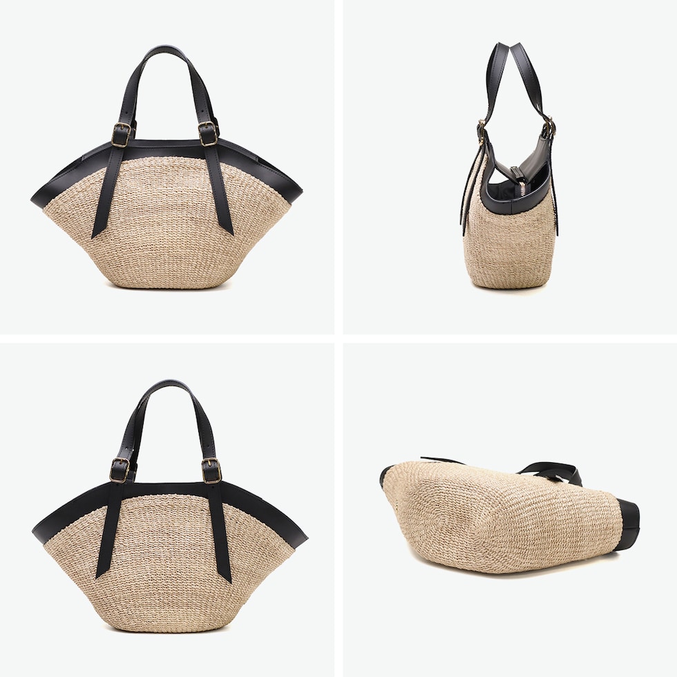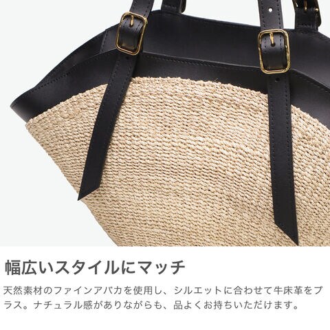 | アバカと革が織りなす 洗練されたかごバッグ 天然素材のナチュラルな風合いとアクセントになったレザーが魅力、舟形のカゴバッグです。アバカで編み上げたボディがカジュアルさを感じさせながらも、優雅な素材感が上品な雰囲気を演出してくれます。きれいめコーデはもちろん、リラックス感のあるスタイルにもなじむため幅広いシーンでお使い頂けます。 |