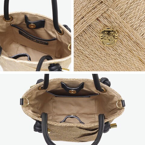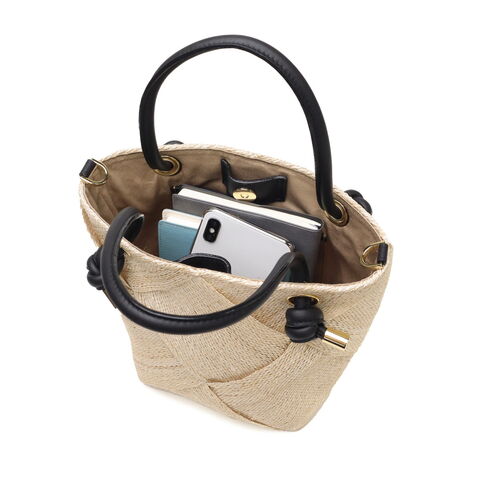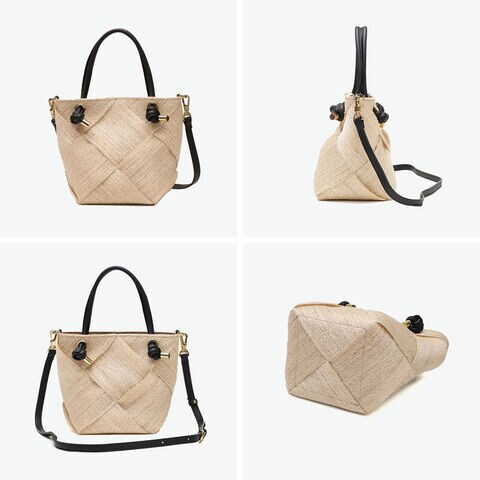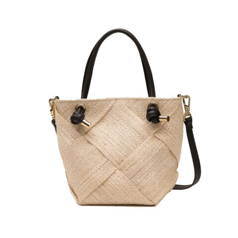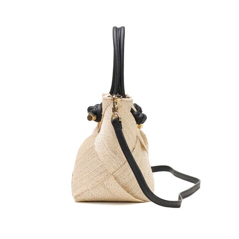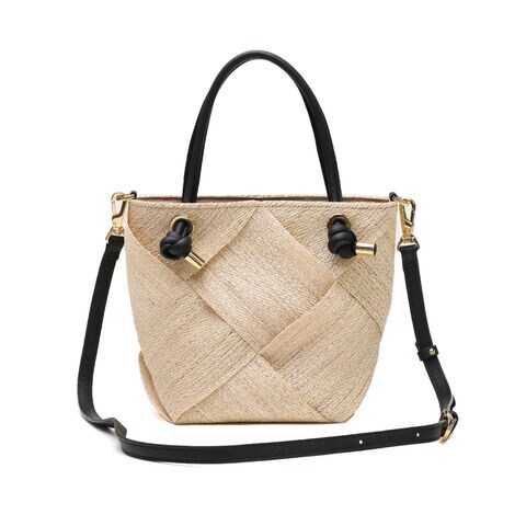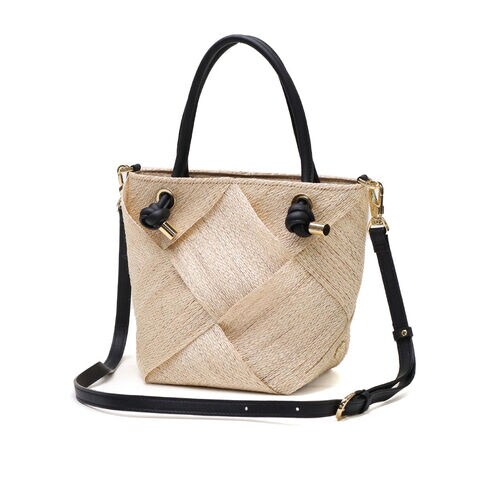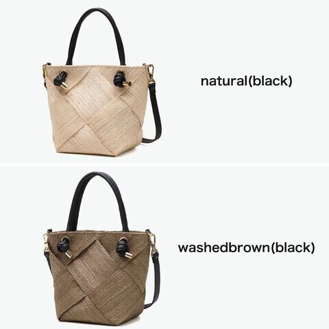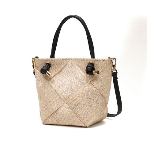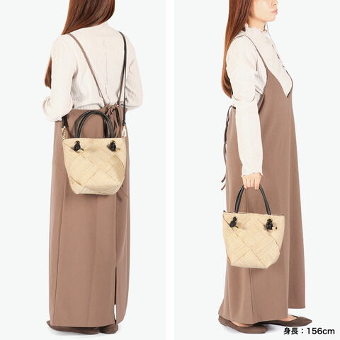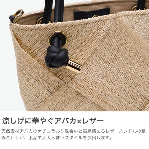 | 涼やかさが漂う 上品な2WAYバッグ 季節感ある天然素材のアバカに結び目デザインのレザーハンドルを合わせて、上品な印象を与えてくれる2WAYかごバッグ。テープ状に織ったアバカをざっくりと大きめに編んだメッシュデザインは軽くて涼し気。付属のストラップで斜めがけもでき、きれいめにもカジュアルにも合うデザインがオンオフに活躍してくれます。 |