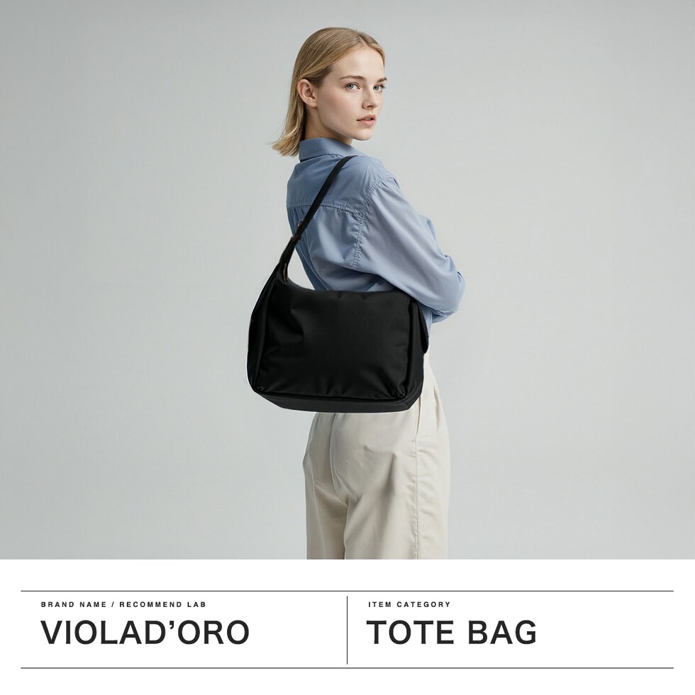 【正規品】 ヴィオラドーロ トートバッグ レディース A4 ファスナー付き 大きめ VIOLAd'ORO バッグ トート 軽量 肩掛け ファスナー ナイロン 軽い ビアンカ かわいい 撥水 ワンハンドル BIANCA ナイロンホーボーバッグ V-2256