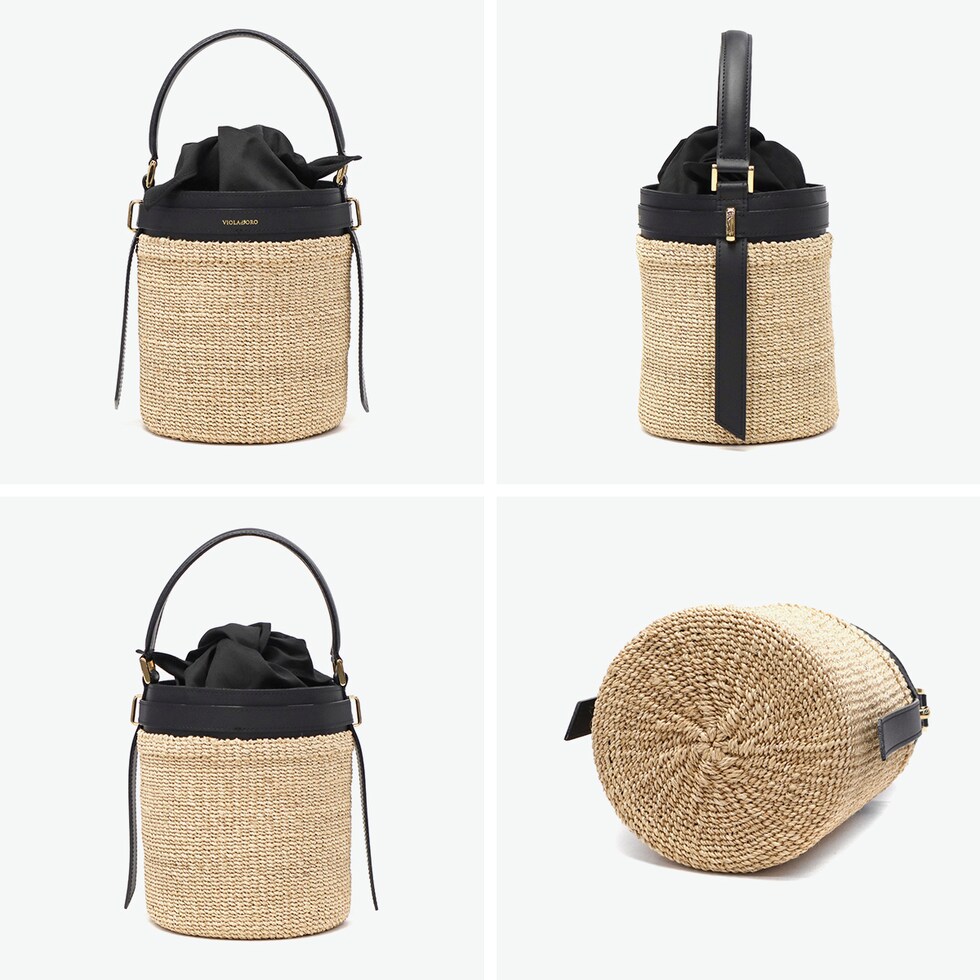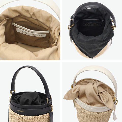 【正規品】 ヴィオラドーロ かごバッグ レディース VIOLAd'ORO トートバッグ ハンドバッグ 軽量 小さめ ブランド 女性 おしゃれ 本革 レザー バケツ型 内布付き MIRO アバカ製 レザーコンビ バケットバッグ V-8891