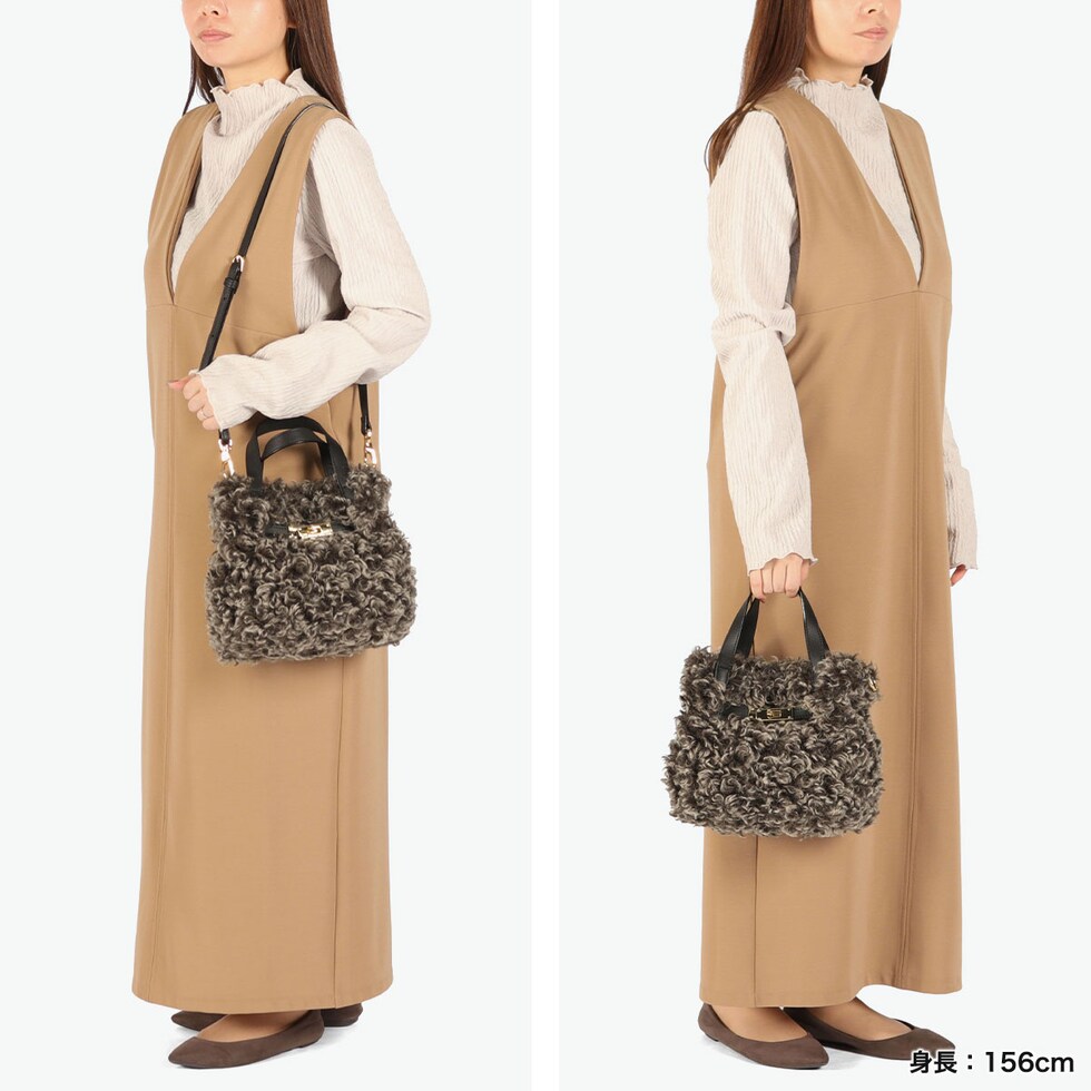 | ふわっと素材で華やぐ 上品エコファーバッグ 強めのカールが印象的なチキャンラムタイプのエコファーを使用した2WAYバッグ。ムラ感のあるカラーが、リアルな質感と程よいカジュアルさを演出します。ベルト部分のゴールドが上品なアクセントとなり、スタイルに華やかさをプラス。ハンドバッグとしてはもちろん、ストラップを付けてショルダーにもできる万能デザインです。リッチな素材感と愛らしさを兼ね備え、秋冬のコーデに映えるアイテムです。 |