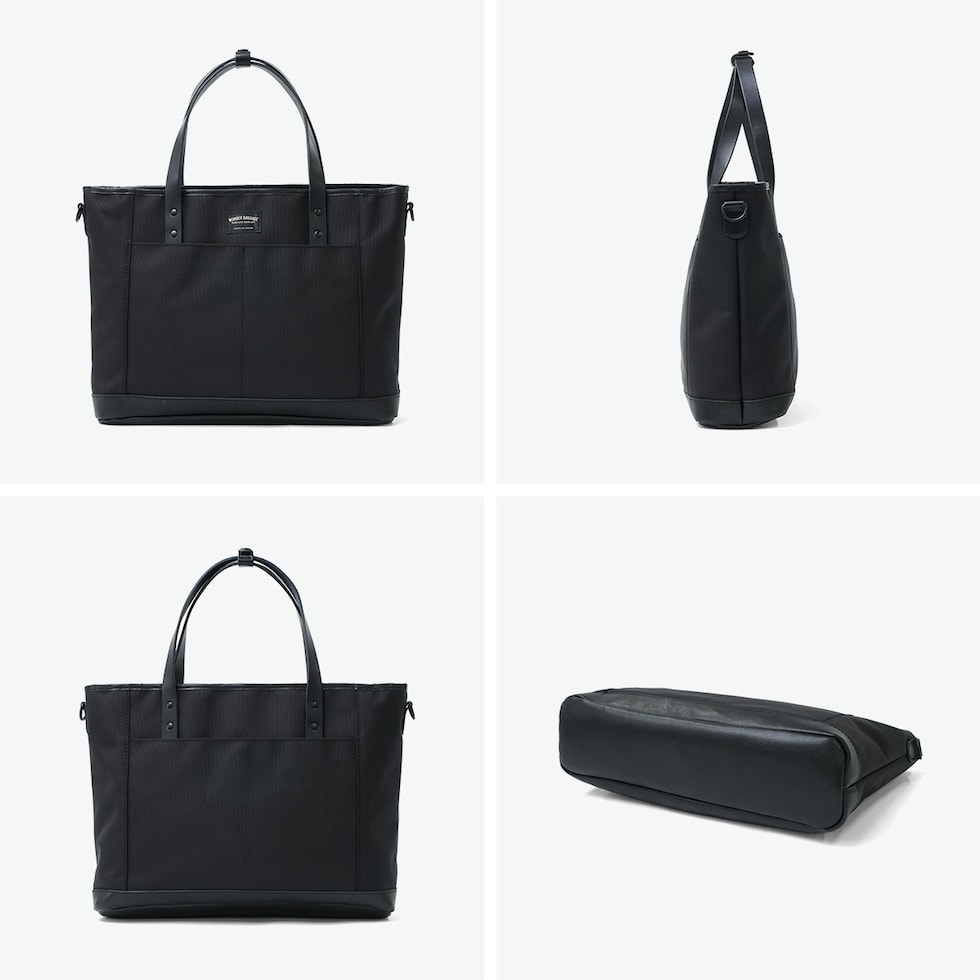 | スタンダードな 大人の定番トート オン・オフを問わず使える汎用性を備えながら、素材選びと細部のサイジングにまで配慮した上質なトートバッグ。ビジネスシーンにも日常使いにも自然に溶け込みます。バリスターナイロンと本革を組み合わせた日本製仕様で、A4対応のファスナー付き収納を装備。無駄を削ぎ落とした洗練された佇まいが、持つ人の品格をさりげなく引き立てます。 |