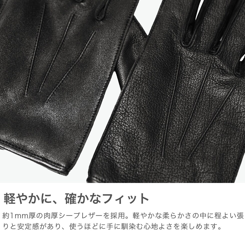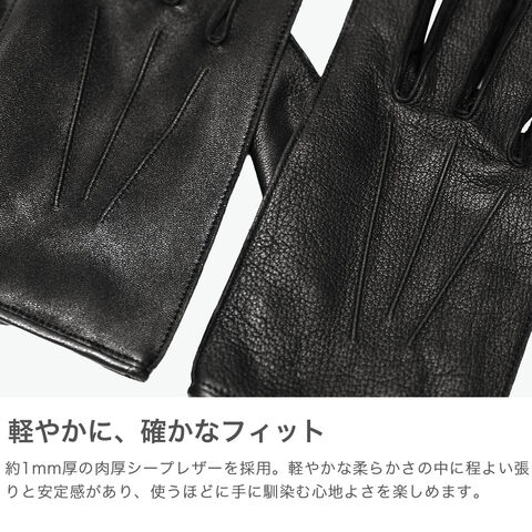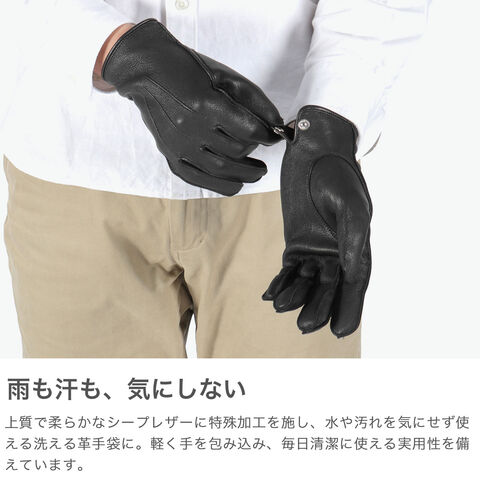 | 柔らかな質感が魅力 洗えるシープレザー手袋 紳士用手袋を作り続けてきた職人の技と、若きタンナー「セトウチレザー」が生み出す“洗える革”を組み合わせた、現代に寄り添うシープレザーグローブ。上質な艶と柔らかさを兼ね備えたシープレザーは、一般的な0.5?0.6mmより厚い約1.0mmの肉厚仕様で、フィット感抜群。使い込むほどに深みを増し、自分だけの風合いへと育ちます。雨や汗に強いウォッシャブル仕様で、清潔に長く愛用可能。冬の贈り物にもおすすめのアイテムです。 |