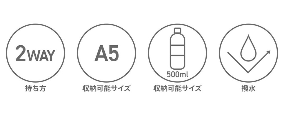 | 仕様 | <外側> ジップポケット(M)×1 ポケット(S)×2 <内側> ポケット(S)×2 |