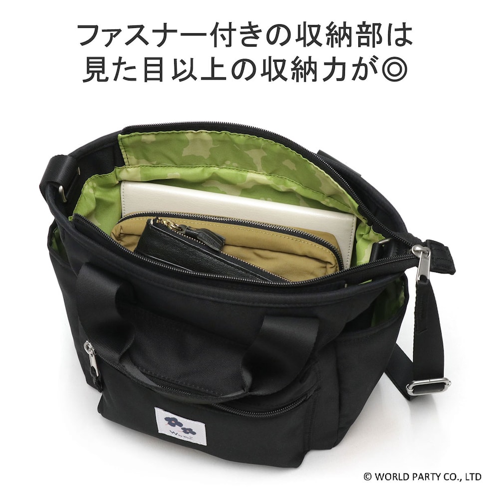W by Wpc. トートバッグ レディース ファスナー付き マチあり ダブルバイダブリュピーシー ショルダーバッグ 2WAY 斜めがけバッグ A5 小さめ 撥水 使いやすい 横 軽量 おしゃれ Fleur 2wayトート 31017
