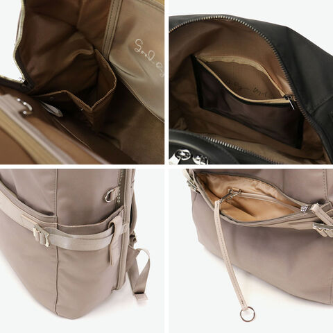 | 仕様 | <外側> ポケット×3 PC収納×1 <内側> ポケット×5 ボトルホルダー×1 ペンホルダー×2 キーリング×1 <付属品> チャーム×1 |