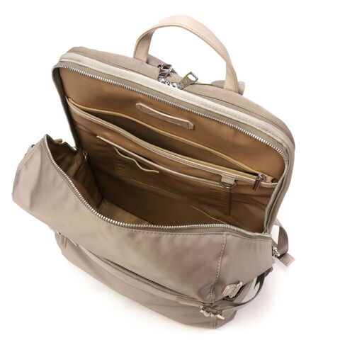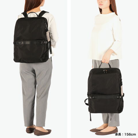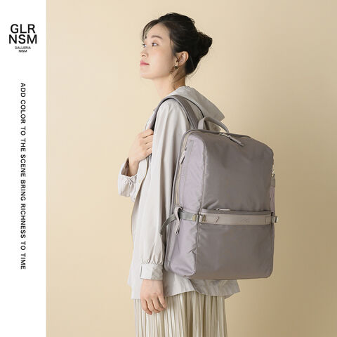 | カジュアルに使える ラフなお仕事リュック リサイクルナイロンを使った、女性のためのお仕事リュックシリーズ『Lycka/リッカ』のスクエア型リュック。カジュアルすぎず、堅すぎず、使いやすさと見た目の「ちょうど良いバランス」を考え抜いたデザインが魅力です。B4サイズに対応した大きめサイズなので、荷物が多い方にもおすすめ。ビジネスに役立つ機能を備え、通勤から出張や旅行にも大活躍します。 |