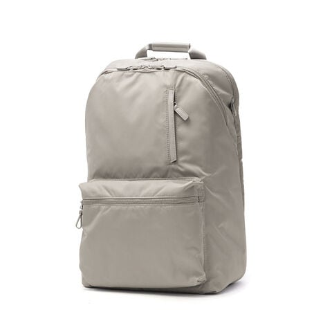 登園・通勤・仕事、ママの毎日を支える25L大容量リュックです。たっぷり入るサイズ感、必要なものにサッとアクセスできるポケットやキーフックなど使いやすさも抜群。単体でも使える付属のポシェットは、車から貴重品だけを持って降りたいときや、公園などでも大活躍。軽い撥水加工が施された光沢感のあるナイロンツイル素材が上品な印象で、オンもオフもスマートに。